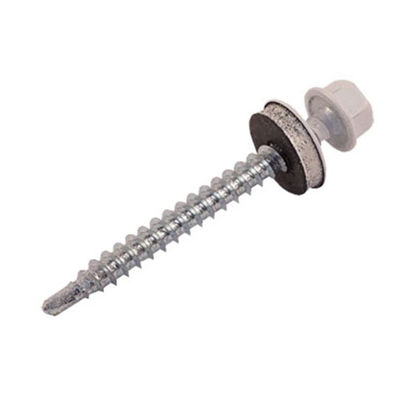 Саморезы кровельные RAL-9003 ярко-белый 4,8х51мм - стальные саморезы с шестигранной головкой и со сверловидным наконечником, укомплектованные шайбой с резиновой прокладкой. Производятся из оцинкованной стали, имеют полную резьбу.