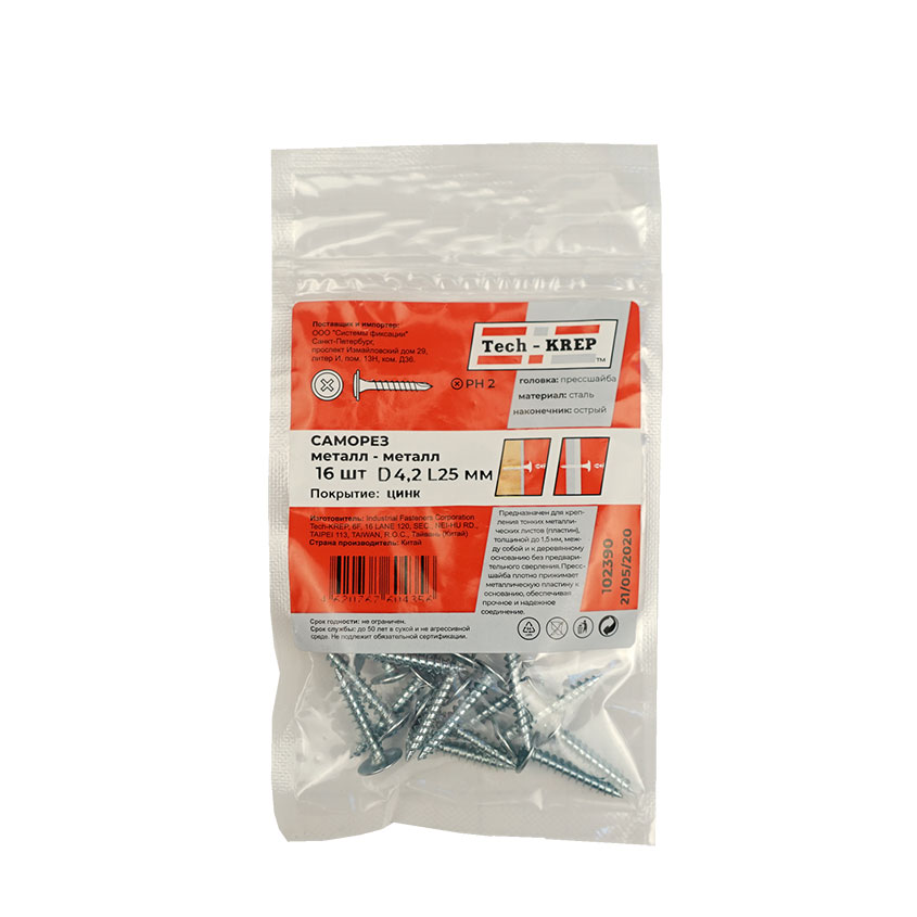 Предназначен для крепления различных металлических элементов толщиной до 0,9 мм между собой и к несущей поверхности без предварительного сверления.