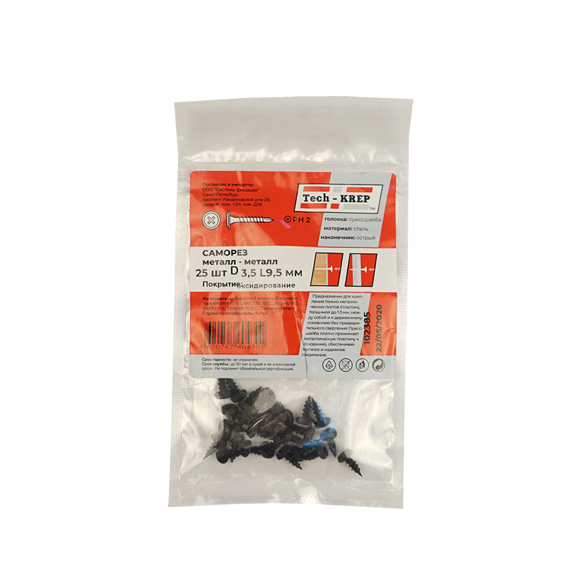 Предназначен для крепления различных металлических элементов толщиной до 0,9 мм между собой и к несущей поверхности без предварительного сверления.