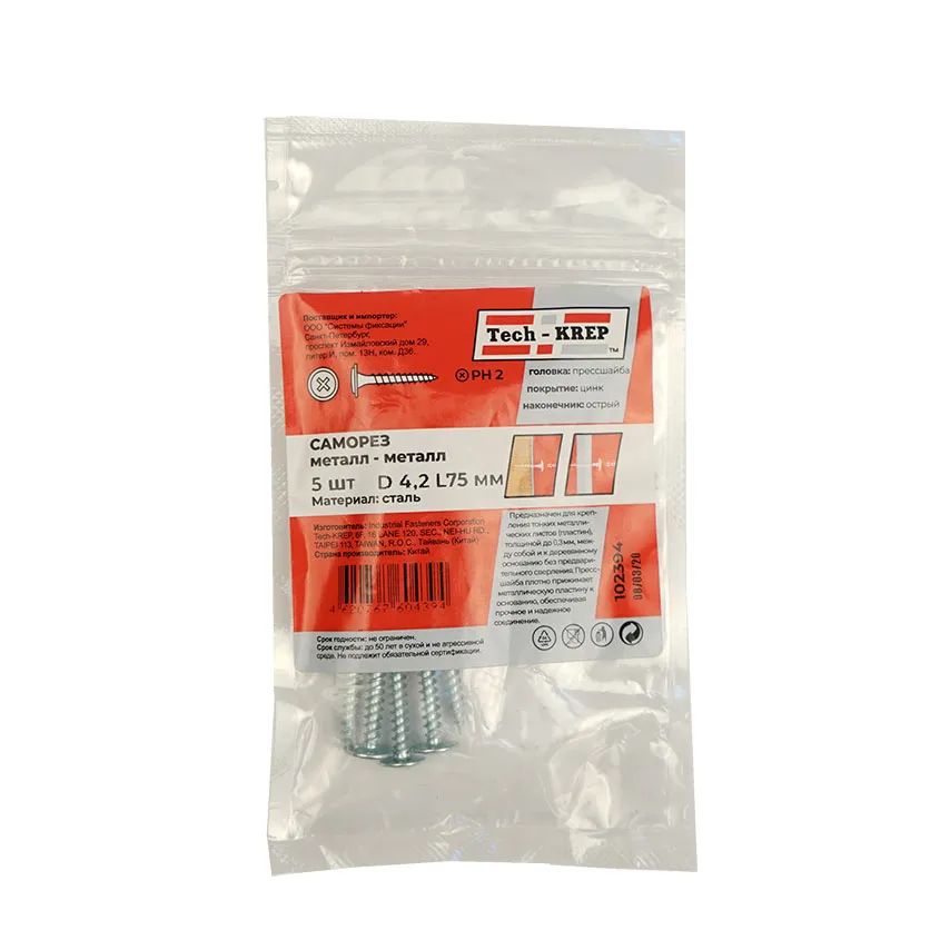 Предназначен для крепления различных металлических элементов толщиной до 0,9 мм между собой и к несущей поверхности без предварительного сверления.