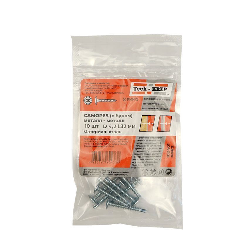 Саморез ШСММ со сверлом 4,2х32мм - стальной крепежный элемент, с галетной головкой, с крестообразной формой шлица Ph2, частой резьбой, со сверлом.