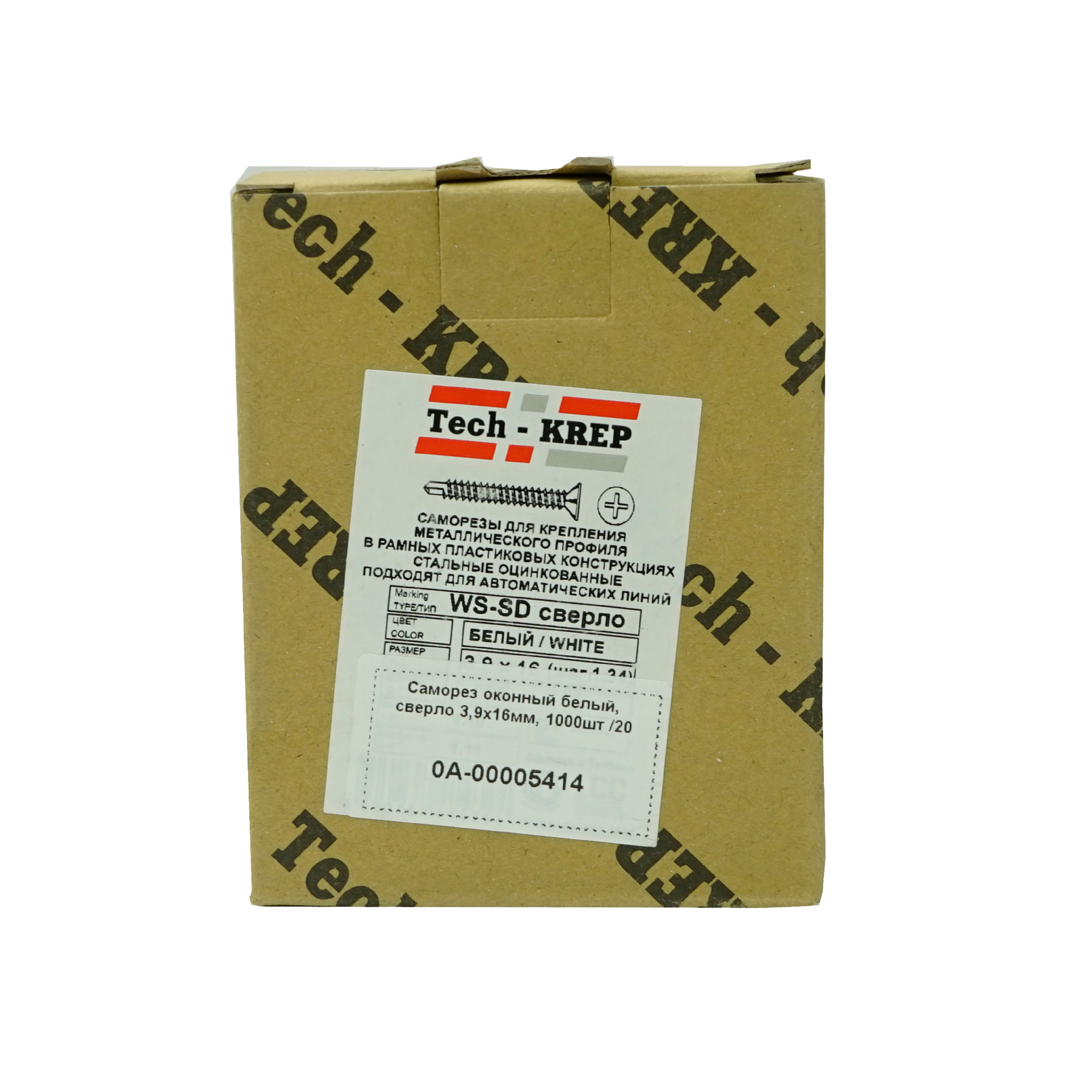 Саморез оконный 3,9х16мм (белый цинк) cо сверлом и насечками на конусной части головки.