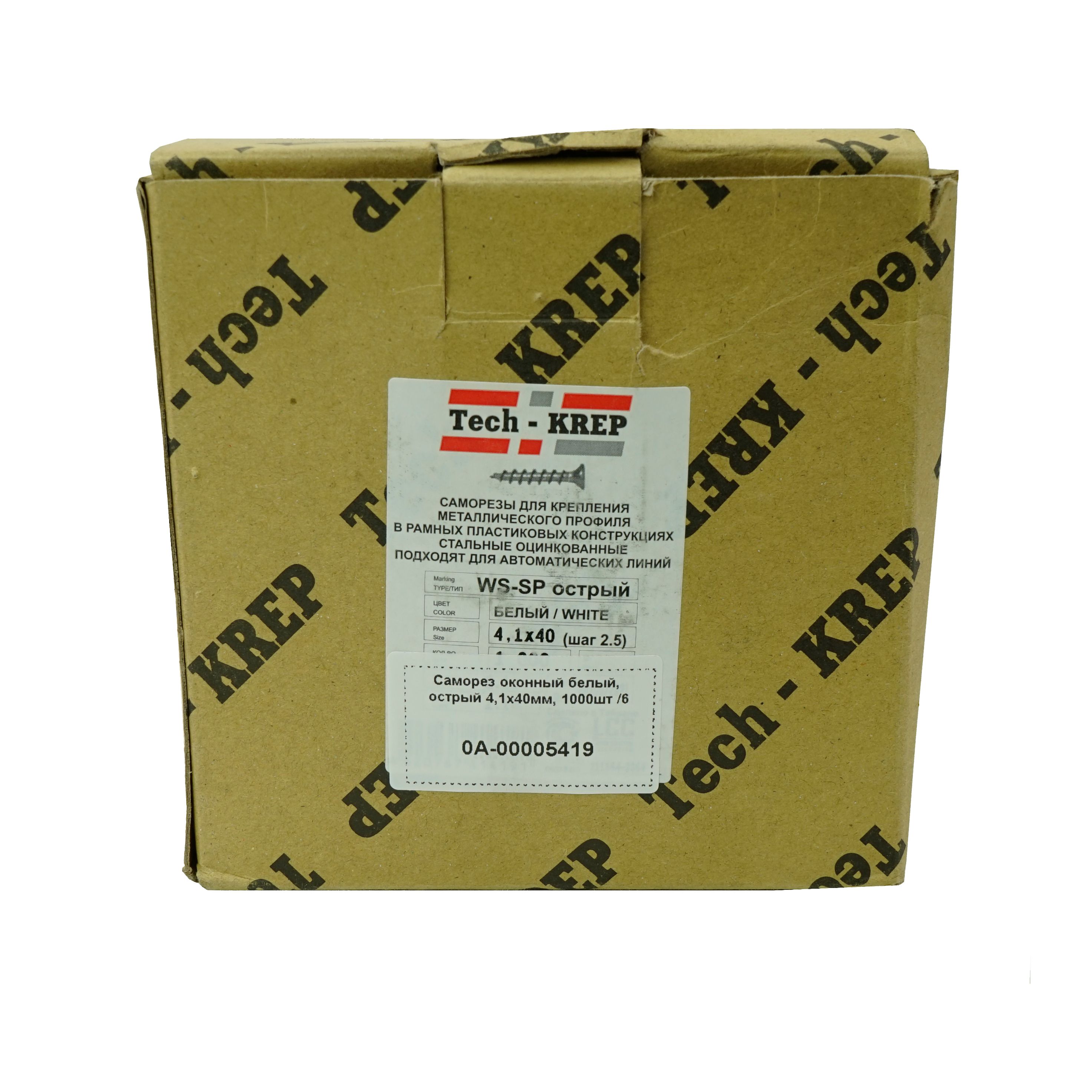 Саморез оконный 4,1х40мм (белый цинк) c острым наконечником и насечками на конусной части головки.