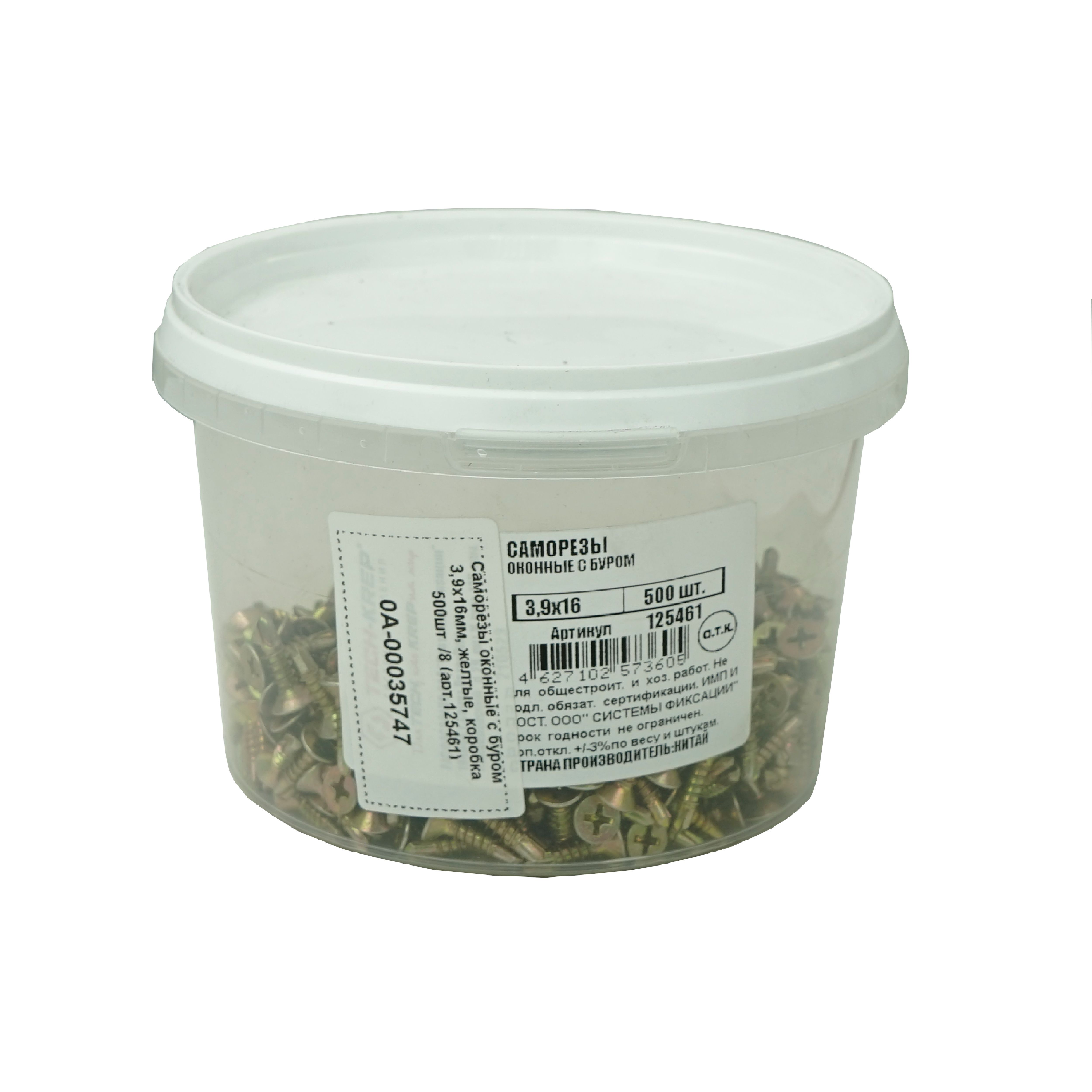 Саморез оконный 3,9х16мм (желтый цинк) c буром и насечками на конусной части головки.
