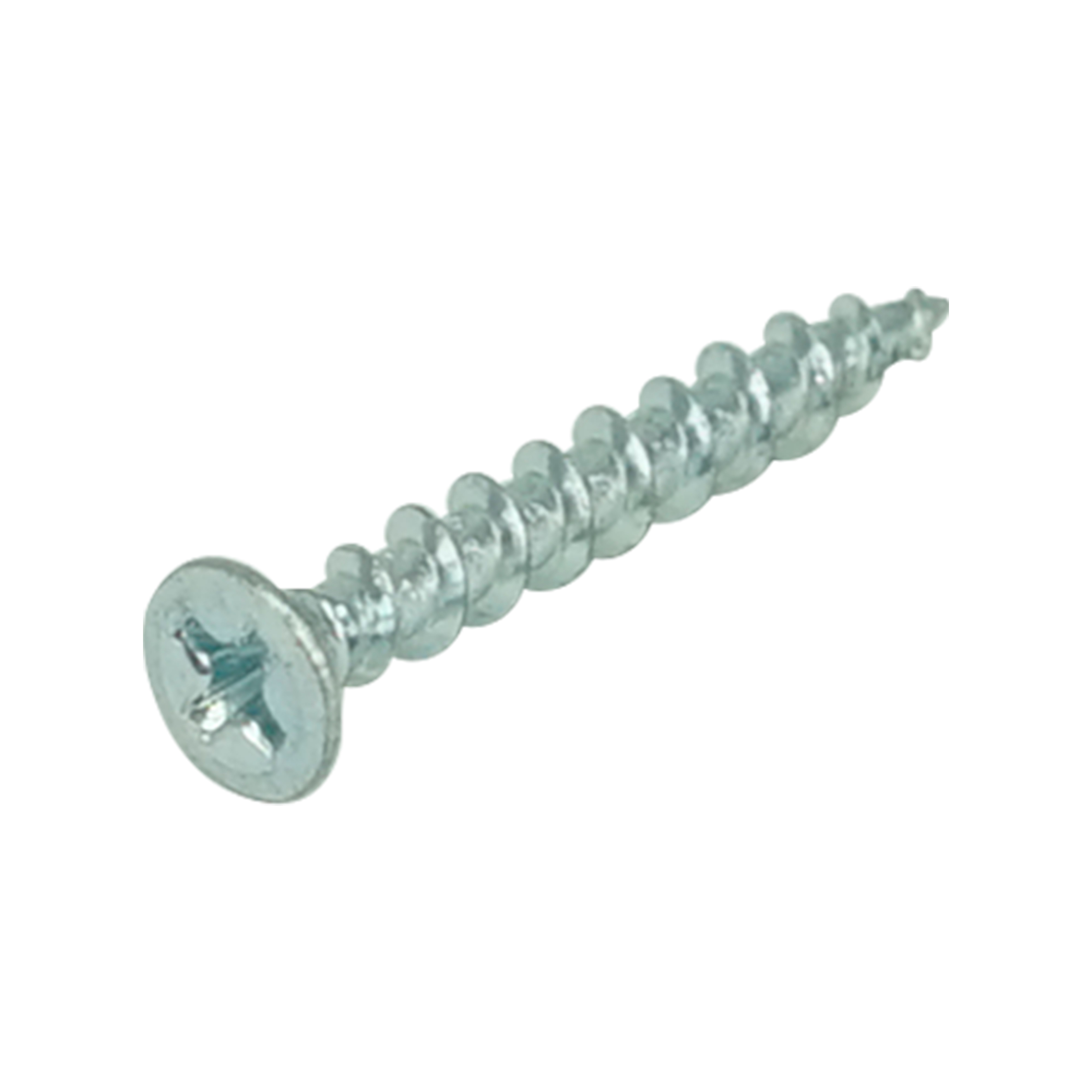 Саморез оконный (белый цинк) c острым наконечником и насечками на конусной части головки.