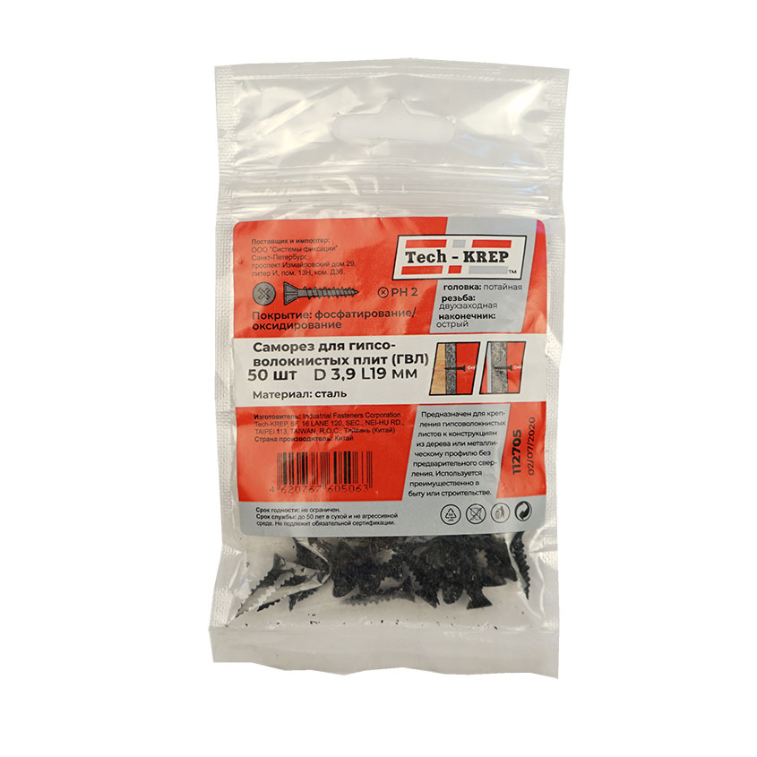 Саморез по гипсоволокну ГВЛ 3,9х19мм изготовлен из стали, поверхность оксидирована (фосфатирована). Наконечник самореза для ГВЛ острый. Резьба друхзаходная, нитки резьбы разной высоты: высокая и низкая.