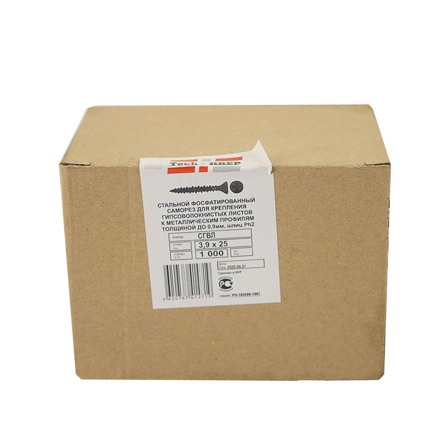 Саморез по гипсоволокну ШСГВЛ 3,9х25мм, 1000шт цена - купить в Барнауле, Бийске. Размеры, характеристики, фото в интернет-магазине.