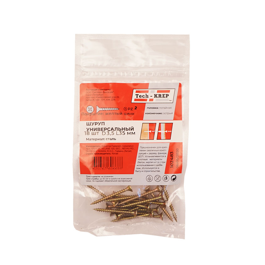 Саморез (шуруп) универсальный желтый ШУж 3,5х35мм, 18шт цена - купить в Барнауле, Бийске. Размеры, характеристики, фото в интернет-магазине.