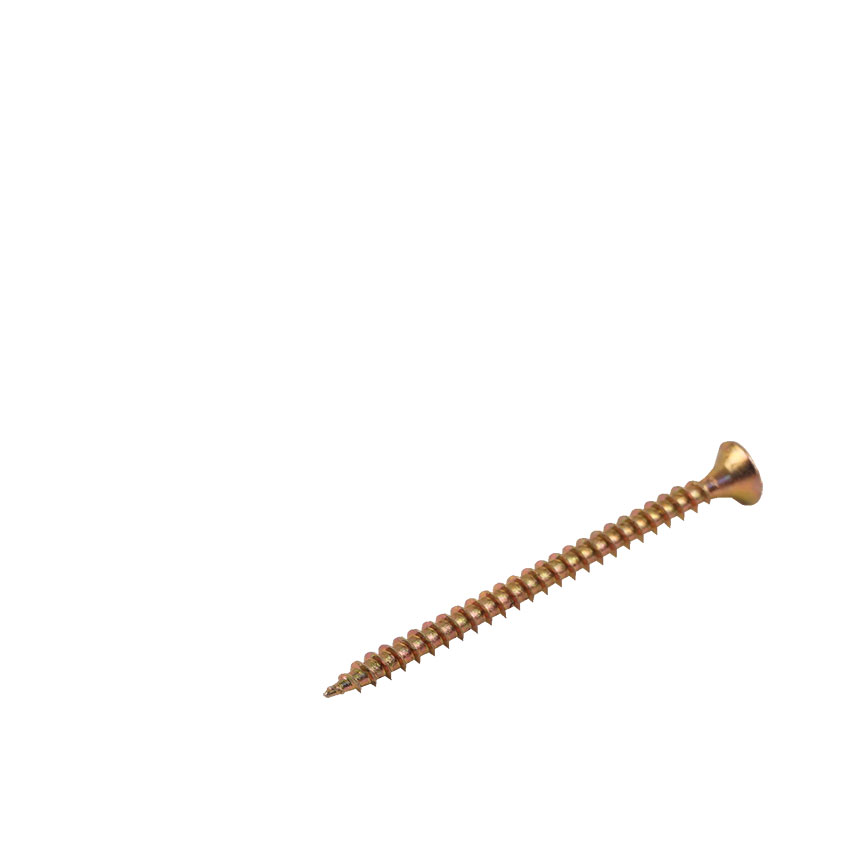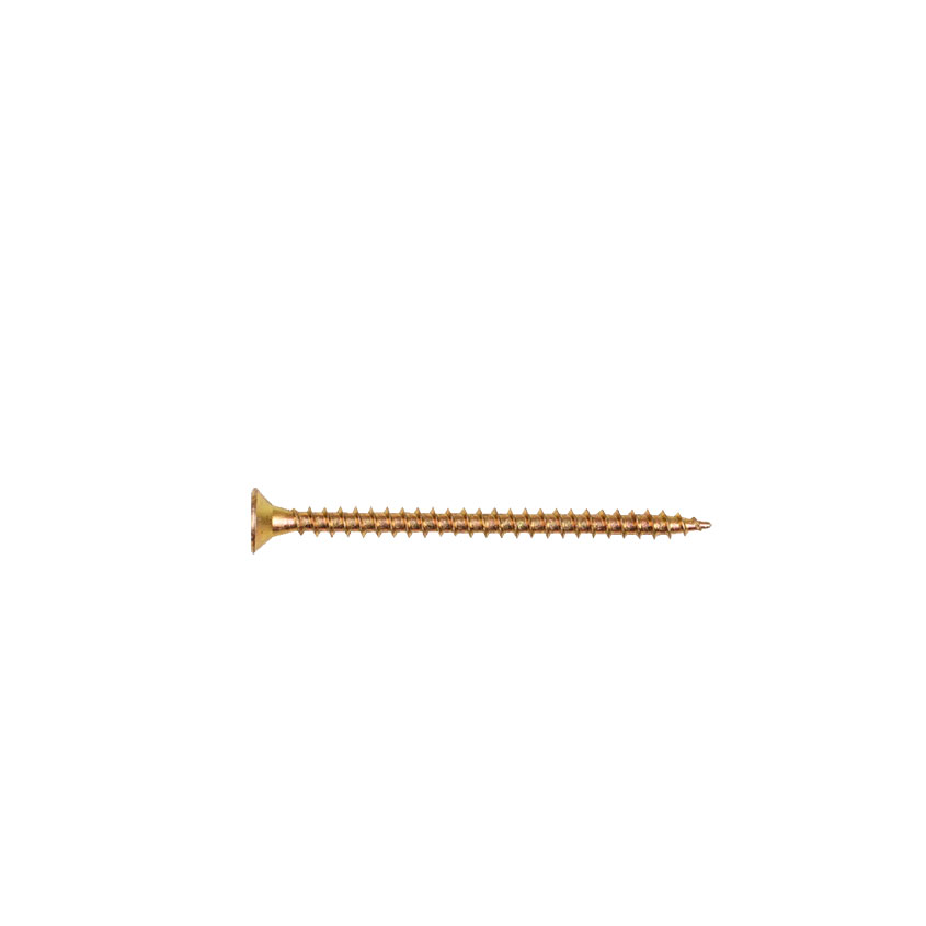 Саморез ШУж 3,5х50мм имеет потайную головку, крестообразный шлиц, острый наконечник и крупную резьбу. Выполнен из углеродистой стали, покрытие – желтый цинк.