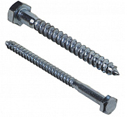 Второе название – глухарь. Имеют острый наконечник и шестигранную головку, которая после монтажа обычно закрывается декоративной накладкой. Предназначены для крепления к основанию и соединения между собой массивных предметов, оказывающих на крепеж значительные нагрузки. Вкручиваются в дерево или в соответствующий материалу основания, размерам шурупа и назначению дюбель. Производятся по DIN 571.