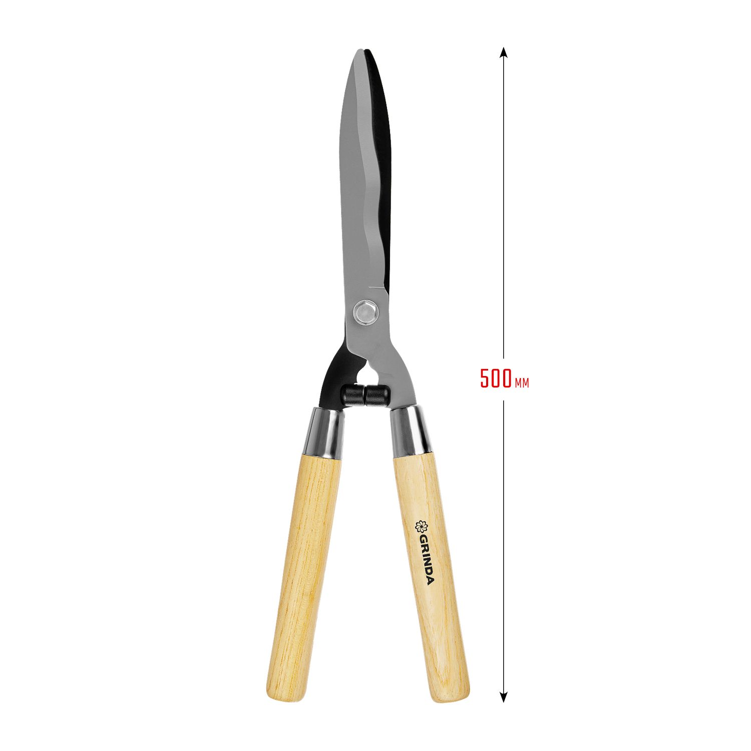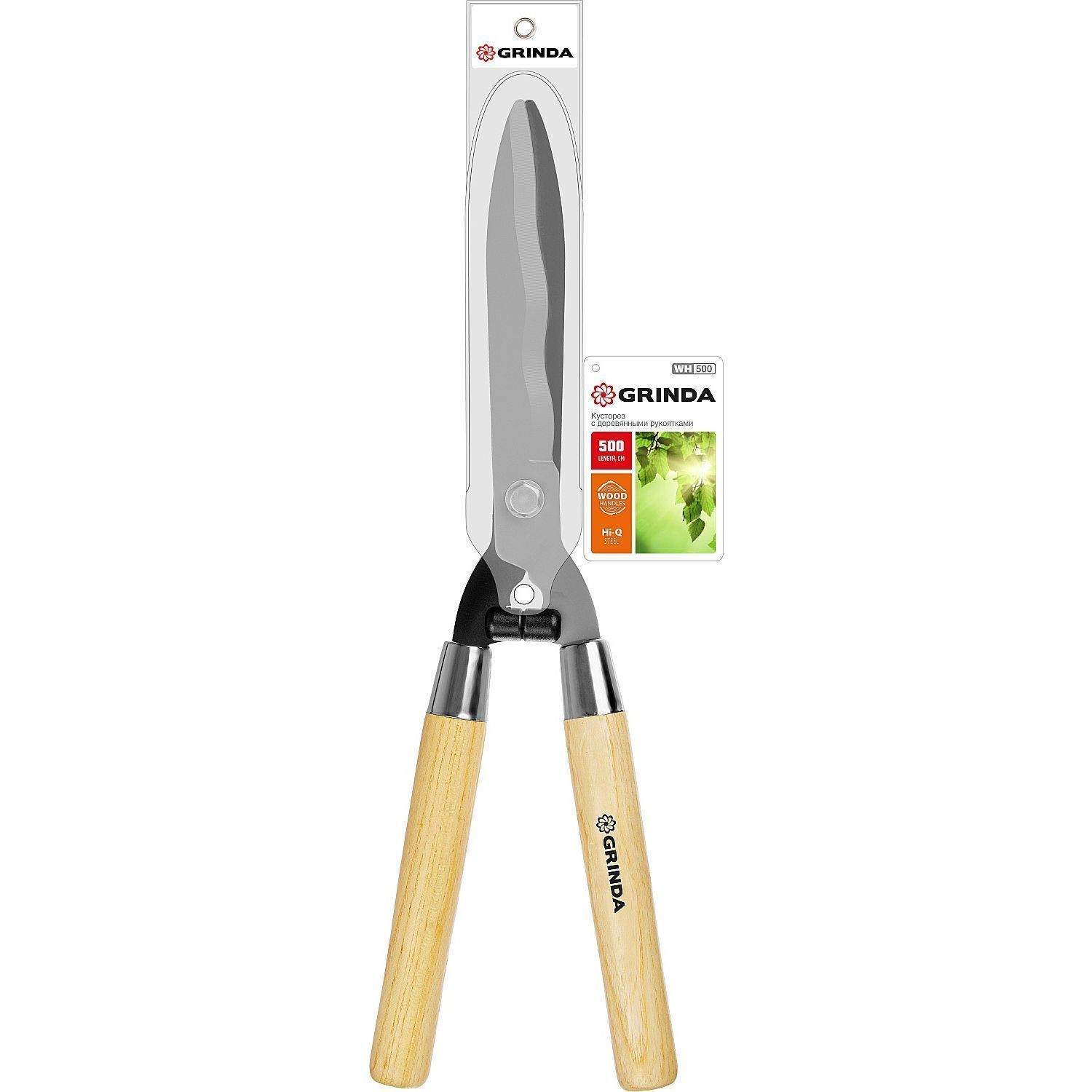 Кусторез с деревянными ручками 500 мм Grinda – это ручной инструмент для ухода за кустарниками и деревьями.
