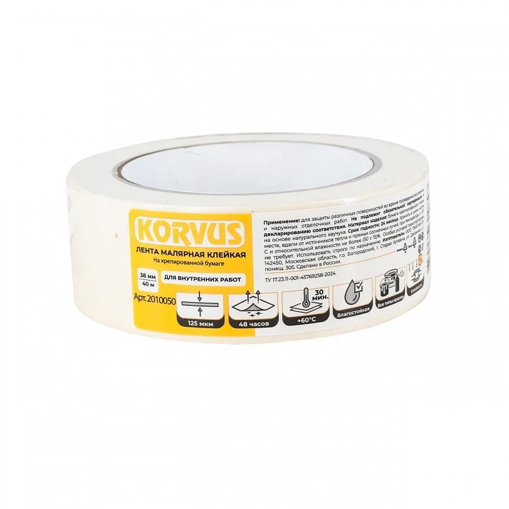 Лента малярная клейкая (Korvus) 38ммх40м цена - купить в Барнауле, Бийске. Размеры, характеристики, фото в интернет-магазине.