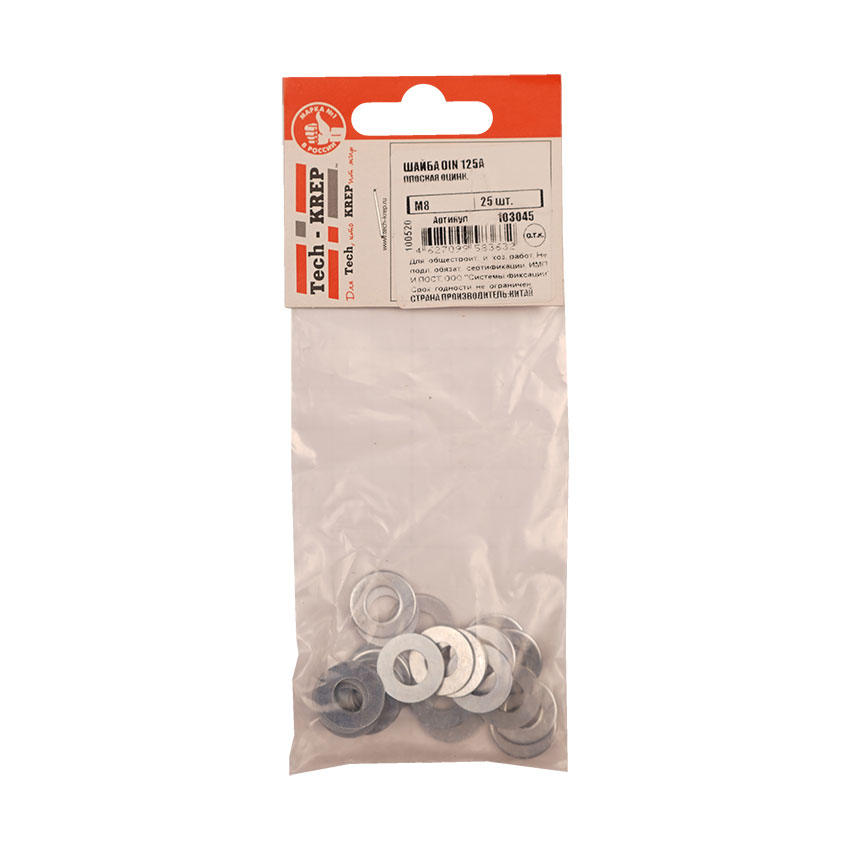 Шайба DIN125а плоская оцинкованная М8 изготовлена из углеродистой стали с антикоррозионным цинковым покрытием.