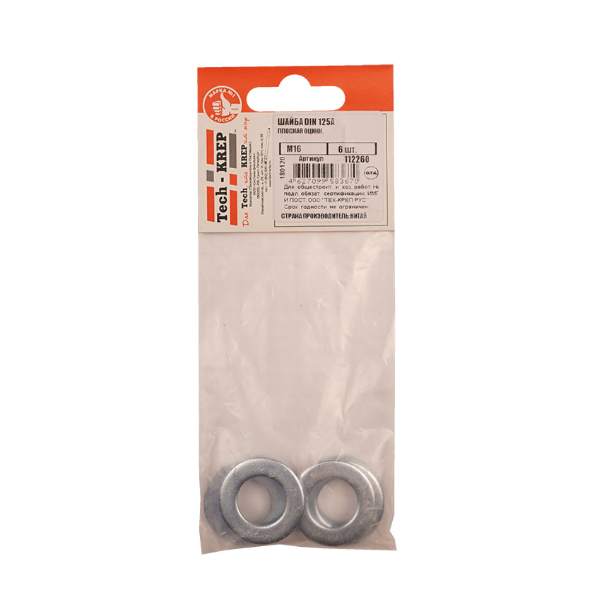 Шайба DIN125а плоская оцинкованная М16 изготовлена из углеродистой стали с антикоррозионным цинковым покрытием.