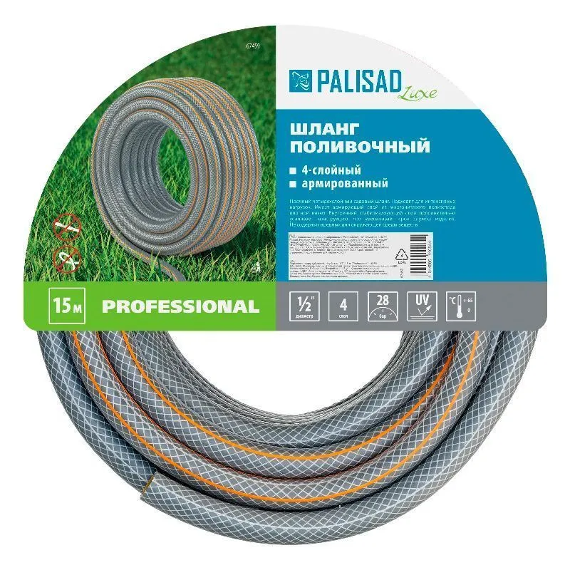 4-слойный армированный поливочный шланг Palisad LUXE «Professional» 67459 длиной 15 м и диаметром 1/2 дюйма используется для организации системы полива на даче, в саду, скверах и небольших парках. С его помощью удобно проводить ежедневное орошение газонов и растений. Гибкий напорный шланг оптимально подходит для интенсивной эксплуатации.