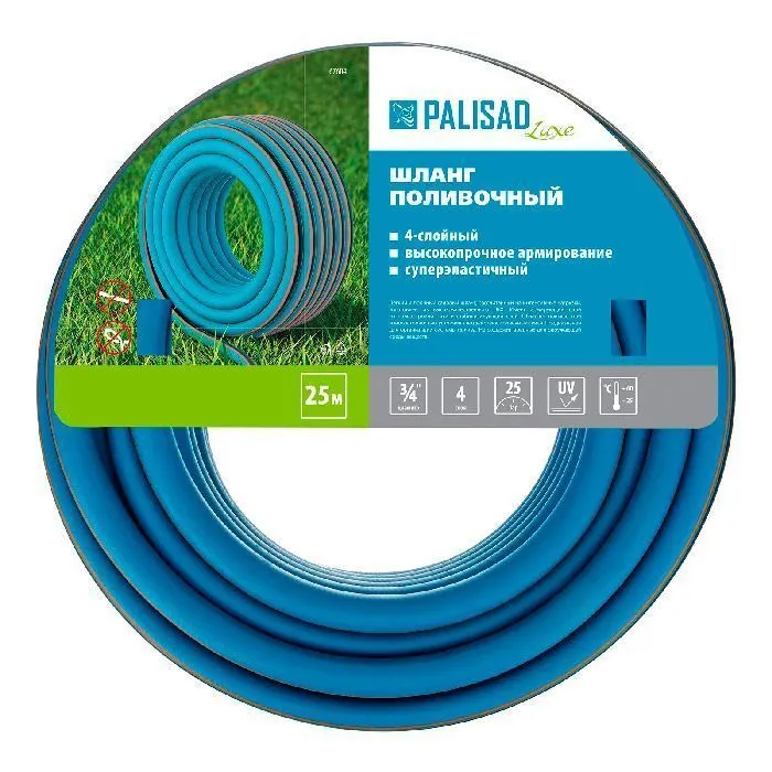 Армированный поливочный шланг Palisad LUXE 67604 длиной 25 м и диаметром 3/4" облегчает уход за растениями, избавляя от необходимости пользоваться лейкой. Совместим с любыми системами полива ТМ Palisad.