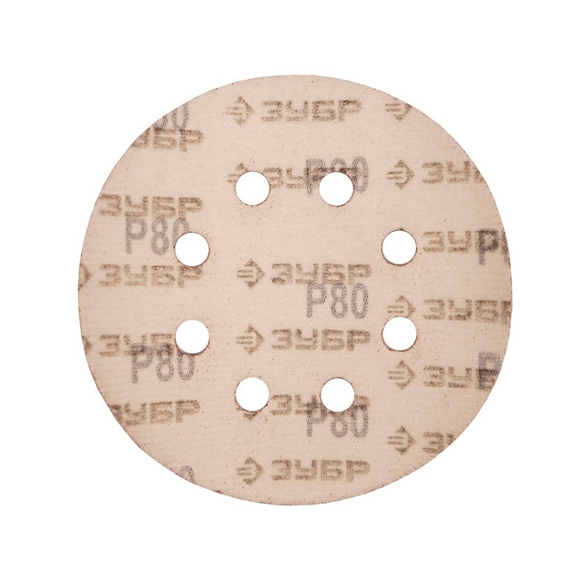 Шлифовальный круг диаметром 125мм от производителя Зубр. Крепится к инструменту при помощи велкро-основы (липучки). Изготовлен на бумажной основе, в качестве абразива использован электрокорунд нормальный. Зернистость Р80 предназначена для последующей обработки после проведения обдирочных работ.