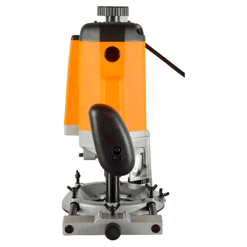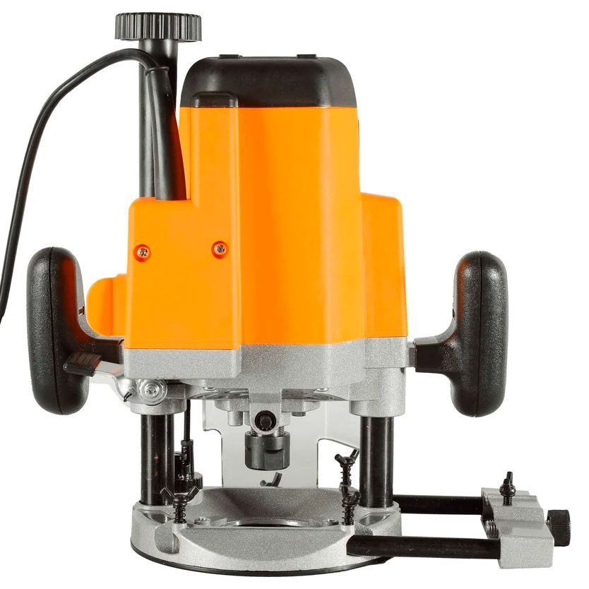 Фрезерная машина Вихрь ФМ-1900 с увеличенной мощностью 1900 Вт предназначена для обработки древесины, древесно-стружечных материалов и пластмассовых изделий на необходимую глубину. Для ее функционирования требуется напряжение однофазной сети. Частота вращения фрезера от 8000 до 23000 об/мин обеспечивает высокую скорость работы. Возможна настройка числа оборотов в зависимости от выполняемой задачи. Шкала с размером цанги 6, 8, 12 мм позволяет регулировать глубину обработки. Для быстрой и безопасной замены режущего элемента предусмотрена функция блокировки шпинделя.