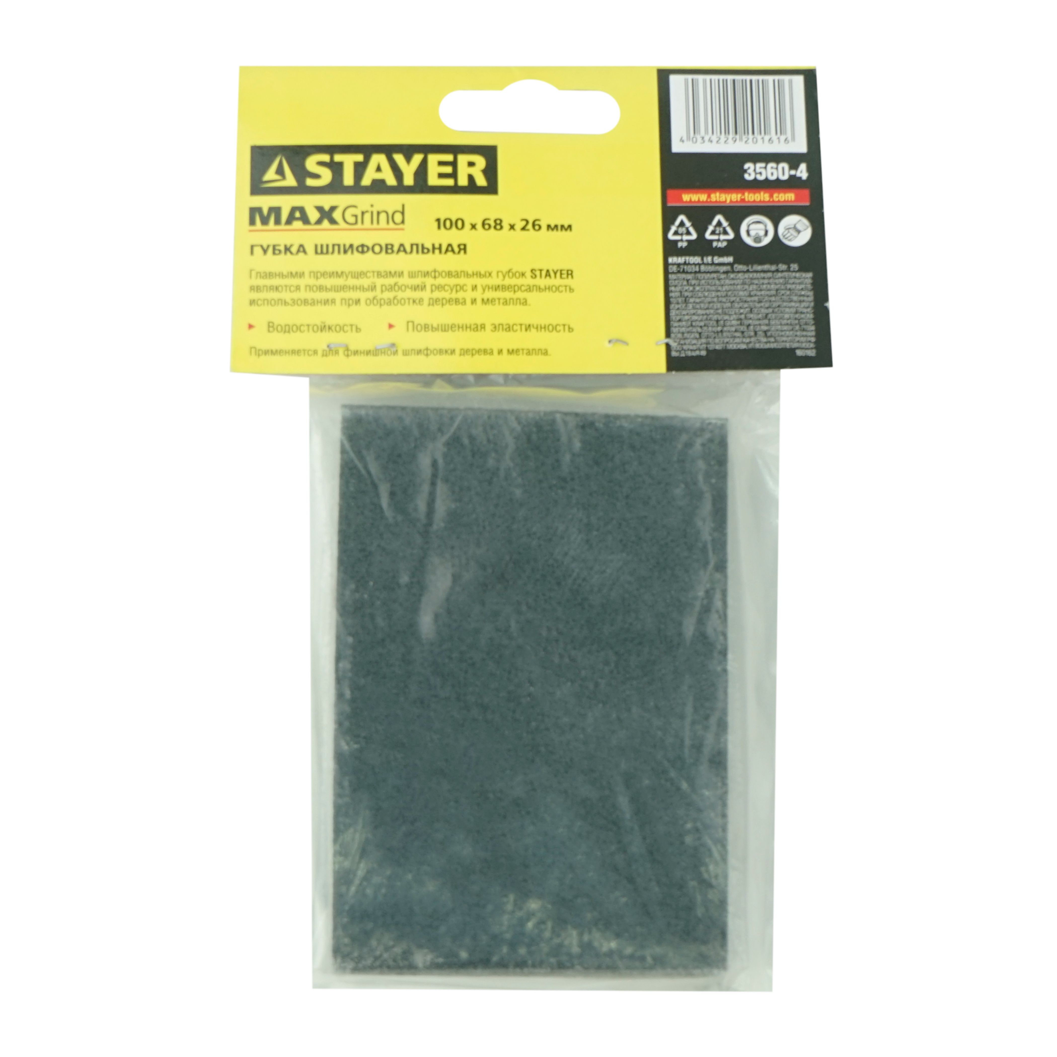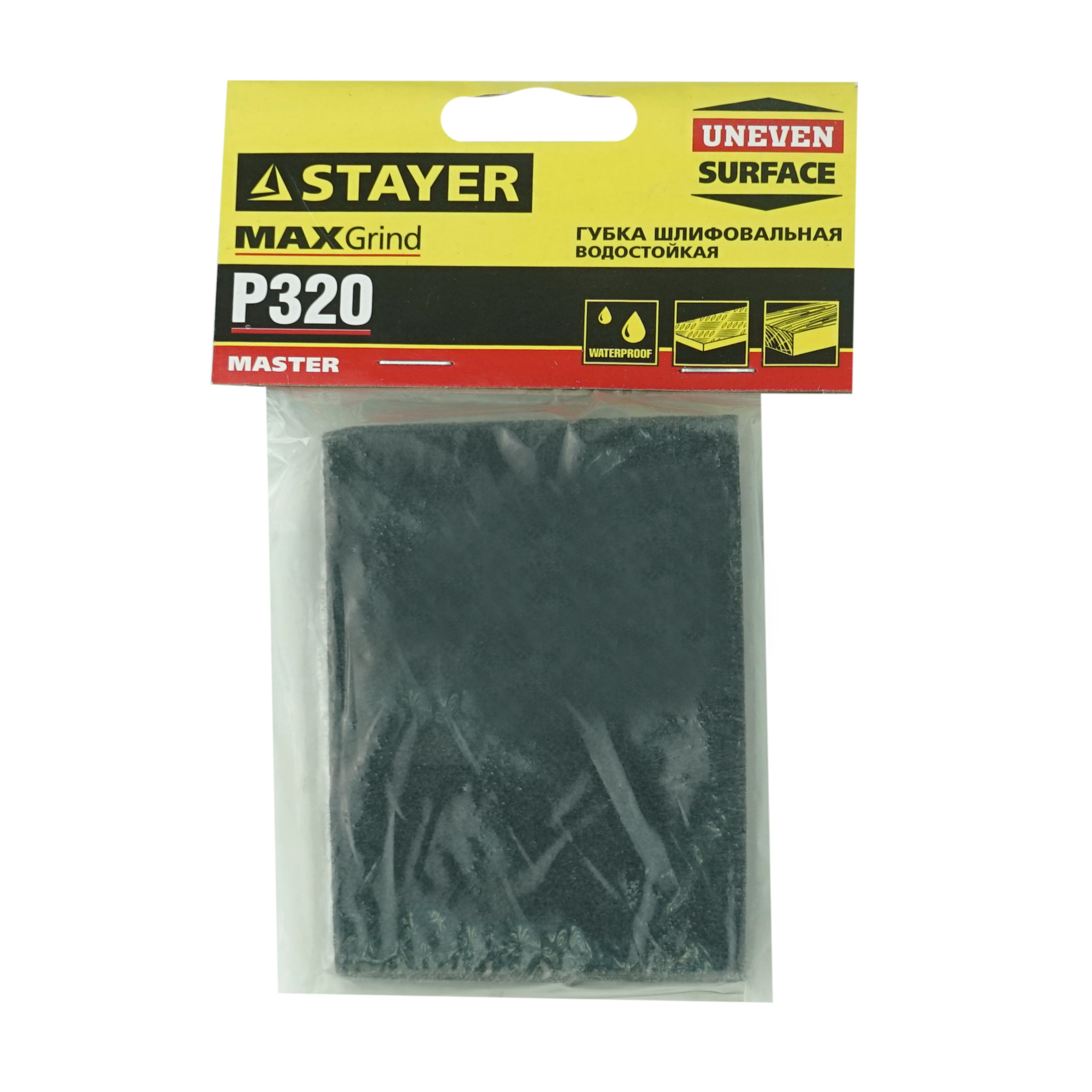 Губка шлифовальная Мастер (Стайер), 100x68x26 мм, зерно Р320 (3560-4) – мягкий и гибкий инструмент с четырехгранной абразивной поверхностью для отделки любых углов и прорезей.