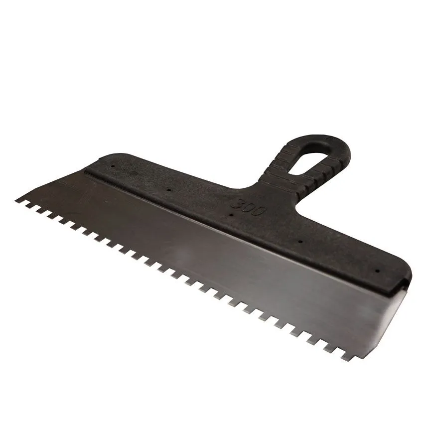 Применяется для равномерного нанесения на различные поверхности клеевых растворов, иных отделочных материалов и их последующего разравнивания с образованием борозд.