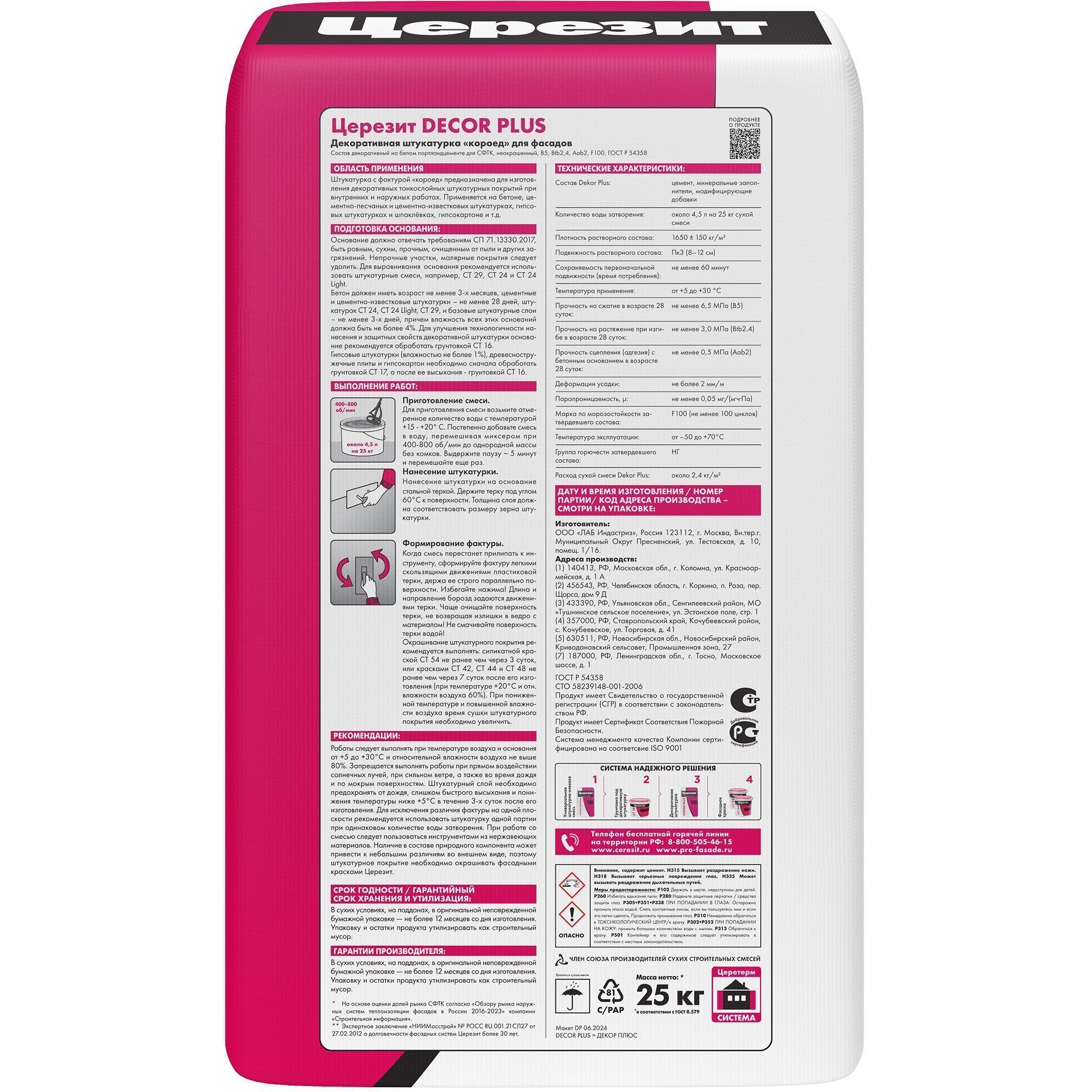 Штукатурка для изготовления тонкослойных декоративных покрытий с комбинированной фактурой внутри и снаружи зданий.Декоративная штукатурка Dekor Plus предназначена для изготовления тонкослойных декоративных покрытий с комбинированной фактурой внутри и снаружи зданий на таких основаниях как бетон, цементные, цементно-известковые и гипсовые штукатурки, гипсокартон, древесностружечные плиты и т.д. Может быть использована в малоэтажном строительстве для изго-товления декоративных покрытий при утеплении фа-садов зданий пенополистирольными и минераловатными плитами.