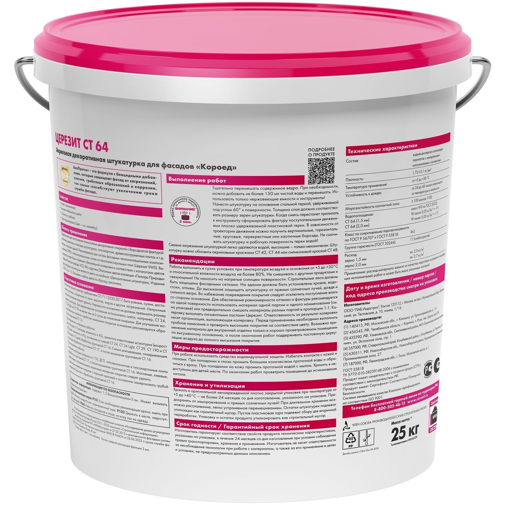 Штукатурка Ceresit Короед 2,0мм СТ 64 акриловая, декоративная 25кг цена - купить в Барнауле, Бийске. Размеры, характеристики, фото в интернет-магазине.
