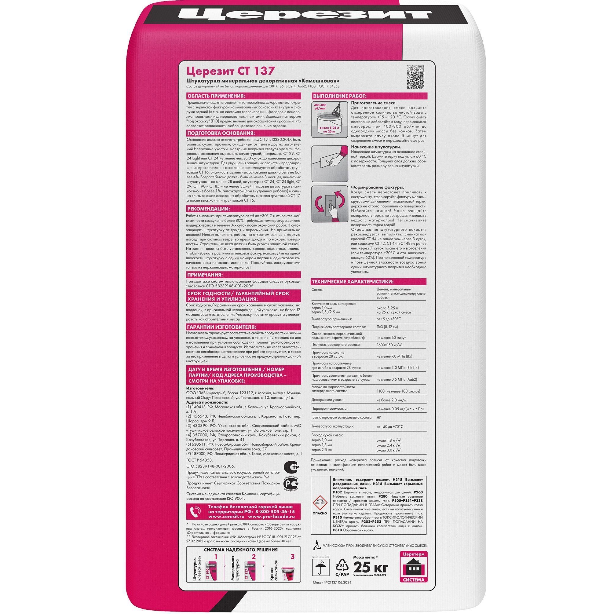 Декоративная штукатурка CT 137 предназначена для изготовления тонкослойных декоративных покрытий с зернистой фактурой на бетоне, цементных и гипсовых штукатурках, гипсокартоне, древесно-стружечных плитах и т.п. основаниях внутри и снаружи зданий.