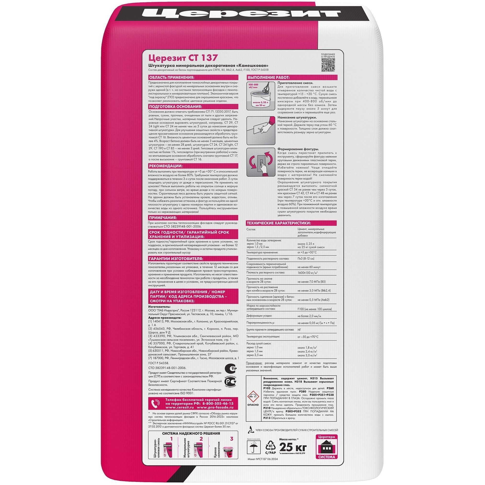 Декоративная штукатурка CT 137 предназначена для изготовления тонкослойных декоративных покрытий с зернистой фактурой на бетоне, цементных и гипсовых штукатурках, гипсокартоне, древесно-стружечных плитах и т.п. основаниях внутри и снаружи зданий.