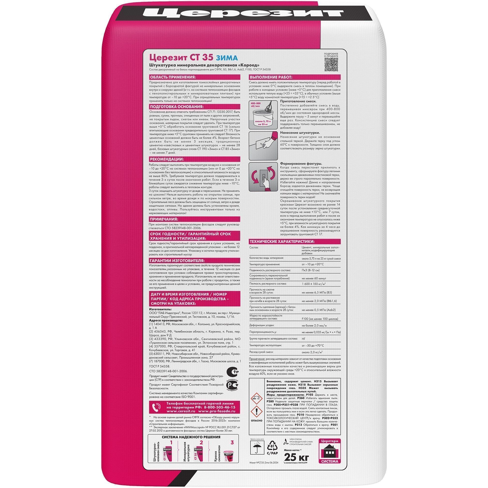 Рекомендована для системы фасадных теплоизоляционных композиционных (СФТК) с теплоизоляционным слоем из пенополистирольных (Ceresit EPS) и минераловатных (Ceresit WM) плит. Экономичная версия смеси «под окраску» предназначена для окрашивания красками, что позволяет реализовать любое цветовое решение отделки.