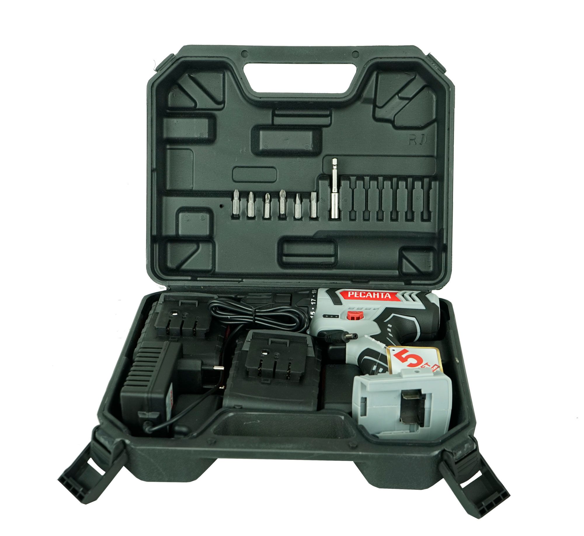 Дрель-шуруповерт, дополнительный аккумулятор, биты, адаптер-удлинитель для бит, адаптер