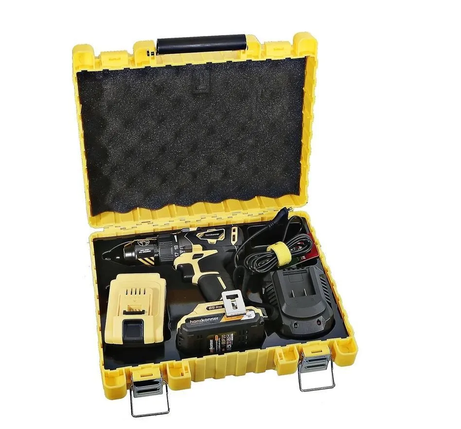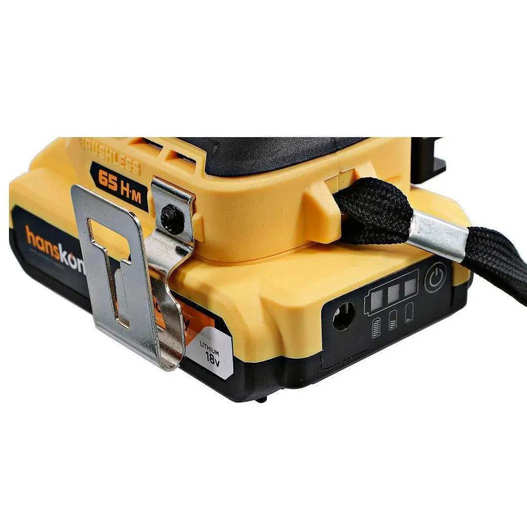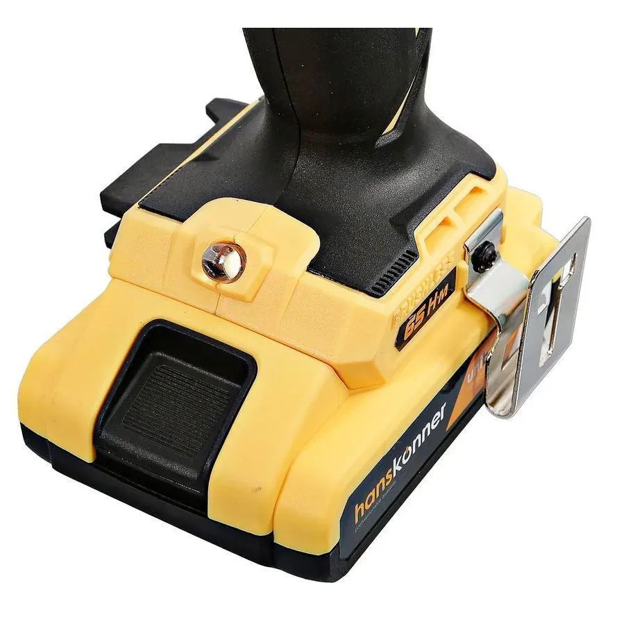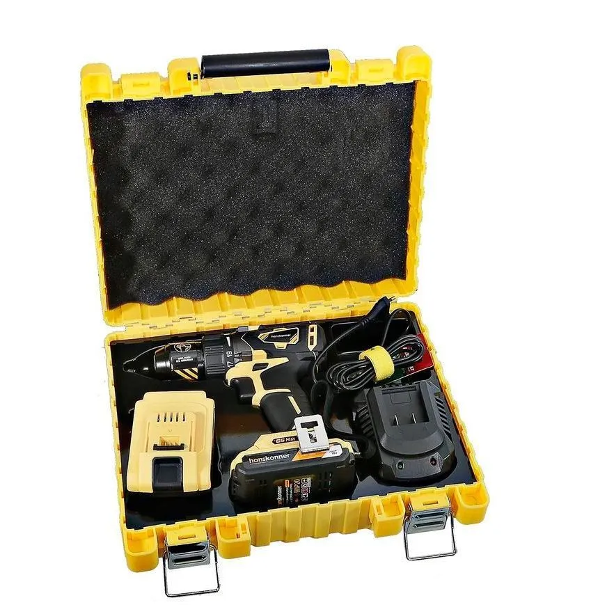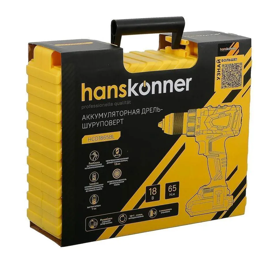 - Два Li-Ion аккумулятора на 2.4 Ah с ресурсом до 3000 зарядок обеспечат полную непрерывность в работе Hanskonner HCD1865BL;