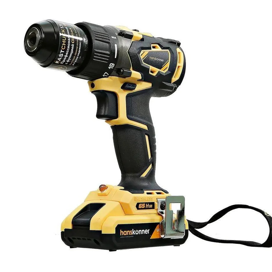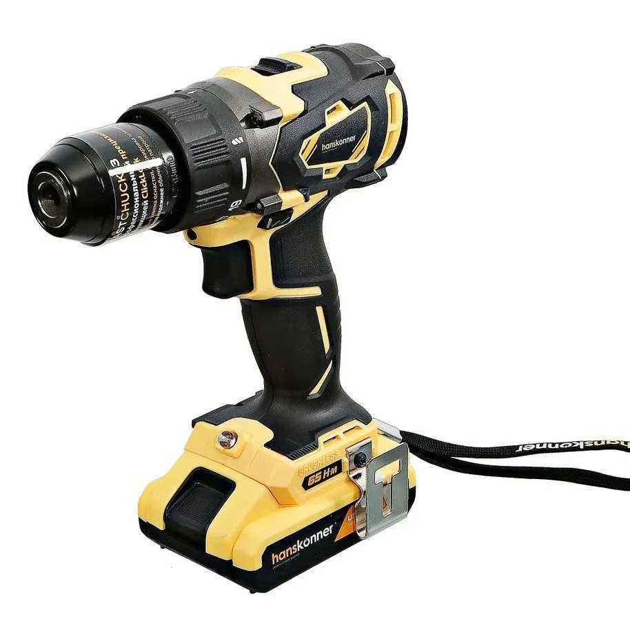 Аккумуляторная дрель-шуруповерт Hanskonner HCD1865BL используется для сверления отверстий и монтажа крепежа.