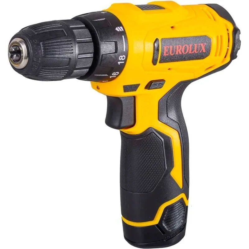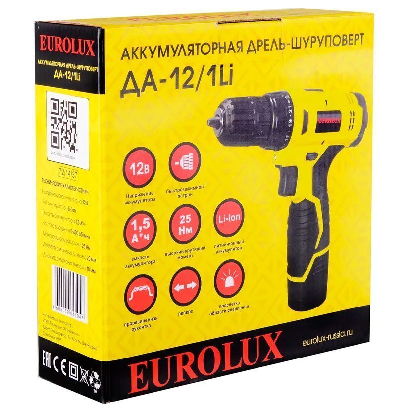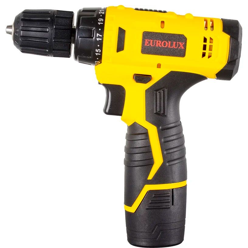 Дрель-шуруповерт EUROLUX ДА-12/1Li – небольшой и компактный инструмент для закручивания креппежа и сверления.