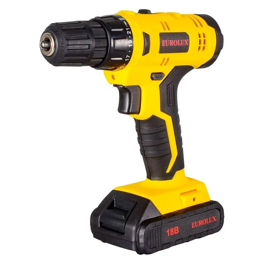EUROLUX ДА-18/2Li принадлежит к автономным, аккумуляторным дрелям-шуруповертам. Инструмент предназначен для сверления отверстий в дереве, пластмассе и металле или для проведения работ, связанных с закручиванием шурупов в различные по плотности материалы. Сравнительно небольшой вес в 1,3 кг и прорезиненная ручка делают процесс комфортным и устройство мобильным в использовании. Емкость Li-ion аккумулятора в 1,5 А*ч, время полной зарядки 1 час. Встроенная подсветка рабочей зоны позволяет добиться максимальной точности.