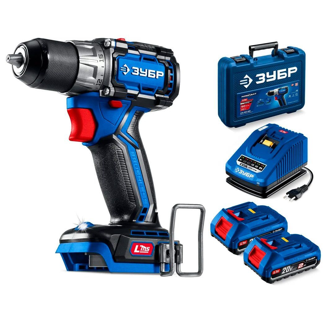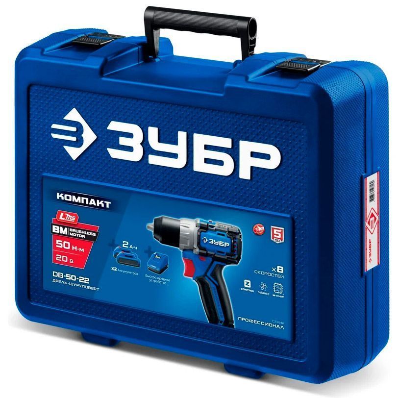 ЗУБР Профессионал Компакт 20 В, 50 Н·м, 2 АКБ LMS (2 А·ч), бесщеточная дрель-шуруповерт, кейс DB-50-22 - высокотехнологичная модель в новой линейке аккумуляторного инструмента ЗУБР серии LMS.