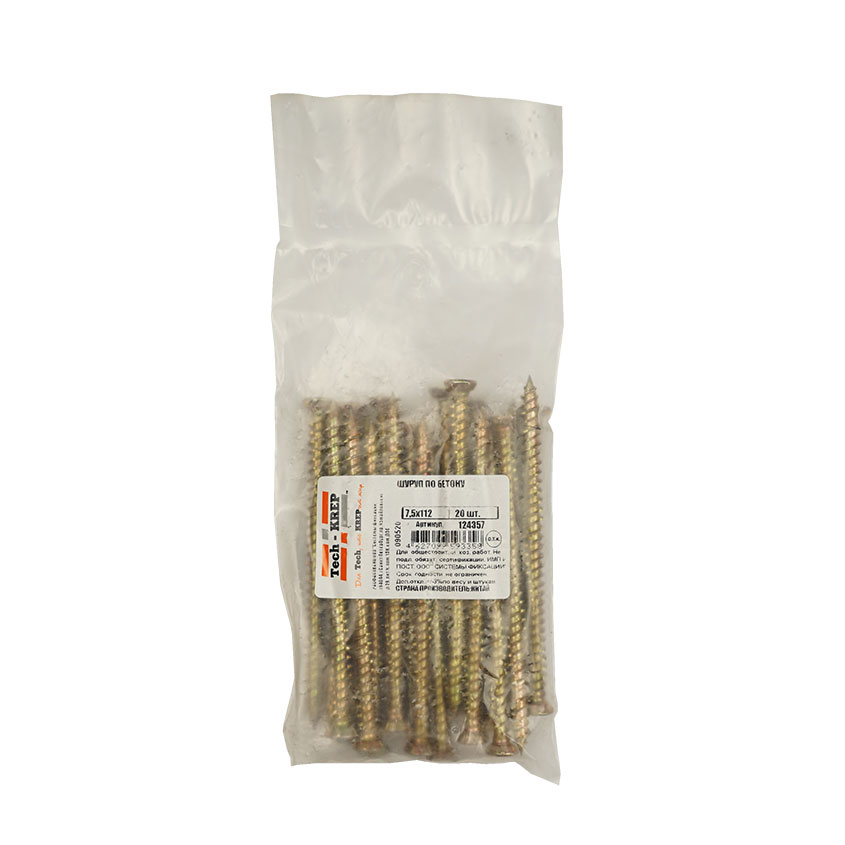 Шуруп по бетону 7,5x112мм изготавливается из высокопрочной стали. Благодаря технологии производства он приобретает устойчивость к коррозии, привлекательный внешний вид, гигиеничность и длительный срок эксплуатации. Резьба шурупа по бетону неравномерна, что обеспечивает надежную фиксацию крепежного элемента даже в неплотном бетоне.