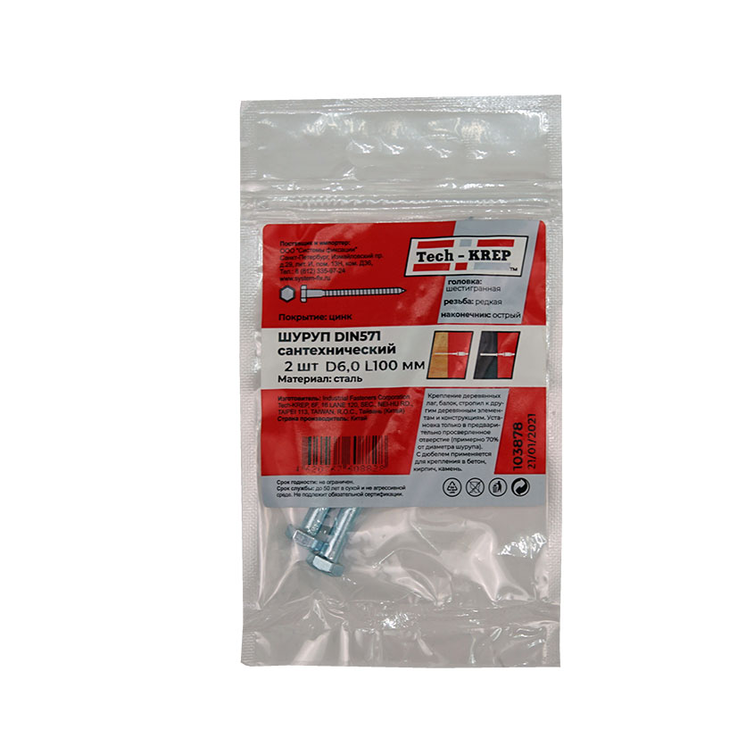 Шуруп сантехнический (глухарь) 6х100мм оцинкованный используется для крепления тяжелых конструкций к деревянному, бетонному или кирпичному основаниям (с использованием пластмассвого дюбеля). Шестигранная форма головки позволяет передать значительный момент при затяжке соединения.