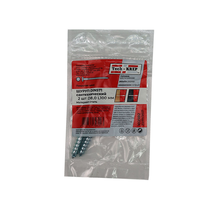 Шуруп DIN571 сантехнический (глухарь) 8х100мм, 2шт цена - купить в Барнауле, Бийске. Размеры, характеристики, фото в интернет-магазине.