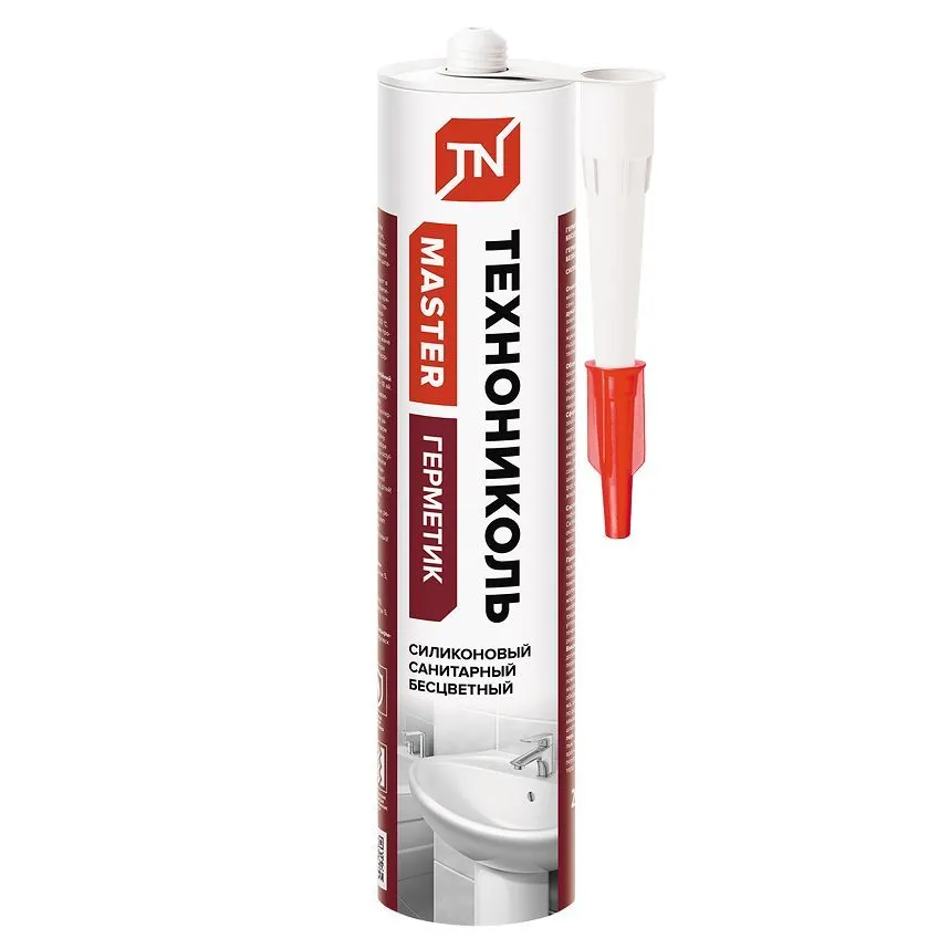 Герметик ТЕХНОНИКОЛЬ санитарный силиконовый специально разработан для соединительных швов в помещениях с повышенной влажностью (кухни, ванные комнаты), а также в строительстве, стекольных системах. Содержит в своем составе специальные добавки, препятствующие образованию плесени. Основные материалы: керамика, фарфор, стекло, твёрдый ПВХ и похожие пластики, эмалированные материалы, коррозионностойкие или окрашенные металлы и лакированная древесина. Бесцветный силиконовый герметик не совместим с минеральными основаниями, зеркалами.