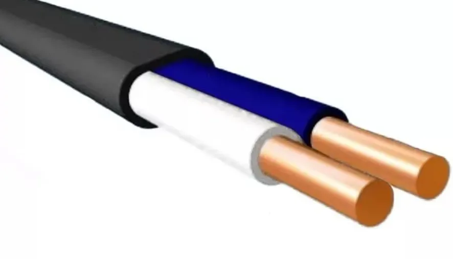 Кабель плоский с двумя медными токопроводящими жилами сечением 4мм2. в изоляции и оболочке из ПВХ, пониженной горючести с низким дымо- и газовыделением (нг-LS).