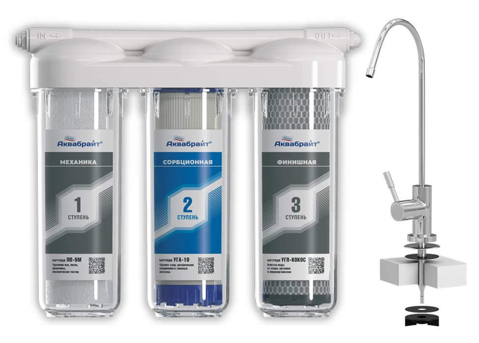 Фильтр для воды Стандарт (Аквабрайт) трехступенчатый, проточный, с краном
