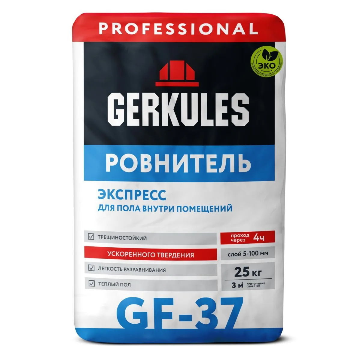 Ровнитель для пола Геркулес GF-37 – сухая смесь, используемая в ходе обустройства бесшовных покрытий полов, как при ведении нового строительства, так и при выполнении ремонтных или реставрационных работ для выравнивания имеющихся во внутренних помещениях оснований.