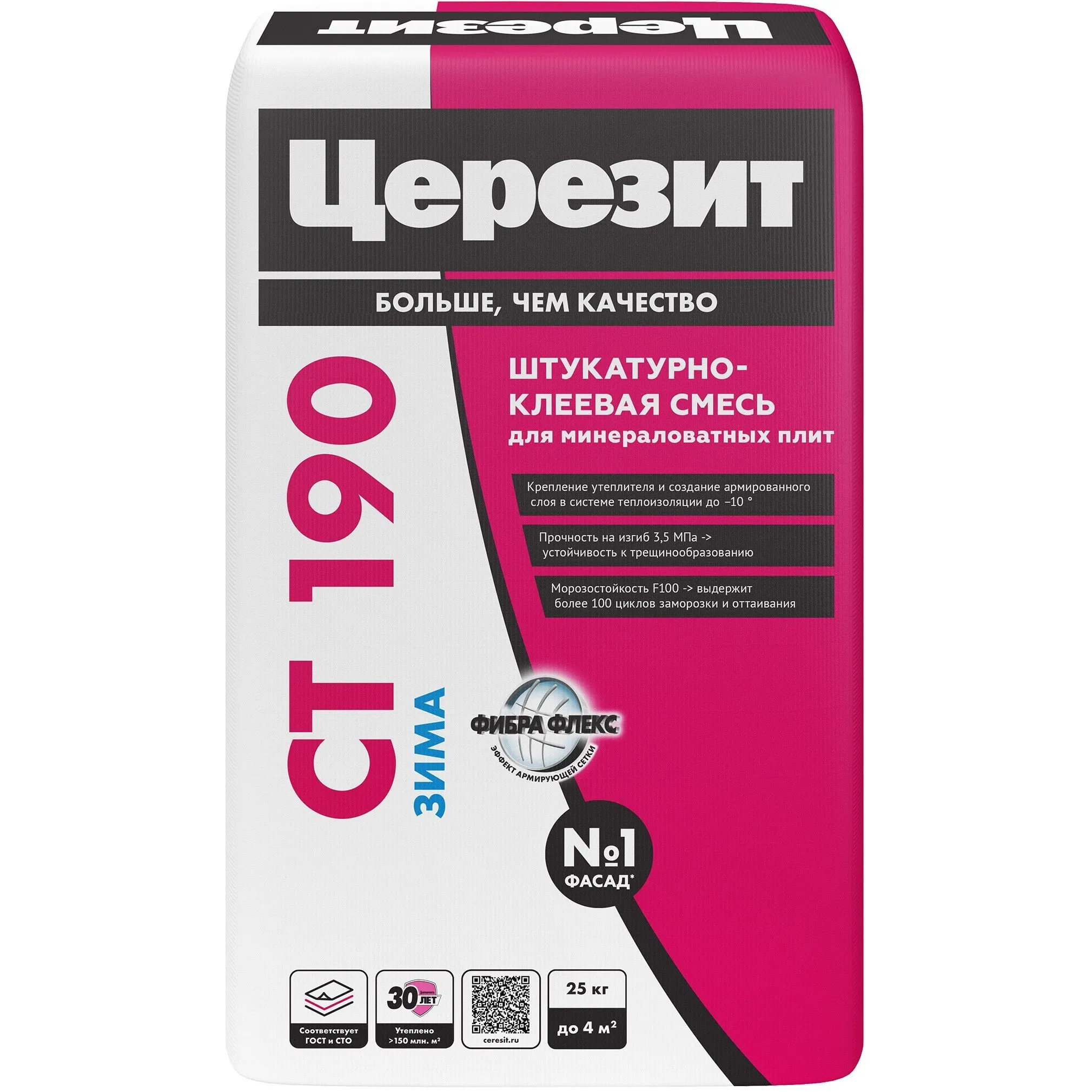 Смесь для крепления минераловатных плит и создания базового штукатурного слоя при наружной теплоизоляции фасадов. Штукатурно-клеевая смесь CT 190 предназначена для крепления на минеральных основаниях минераловатных теплоизоляционных плит и создания на них базового штукатурного слоя, армированного стеклосеткой, при устройстве систем фасадных теплоизоляционных композиционных (СФТК) с теплоизоляционным слоем из минераловатных плит (Ceresit WM).