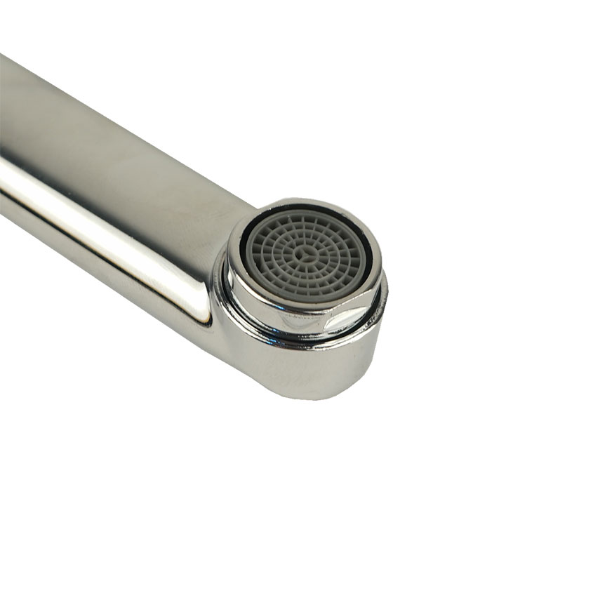 Плоский поворотный излив длиной 30 см из нержавеющей стали оснащен качественным аэратором с пластиковым сердечником типа "Бенц".