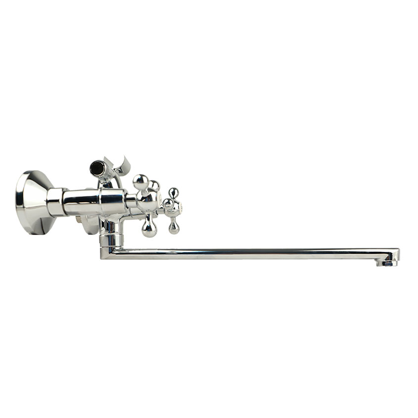 Описание: Классическое исполнение коллекции Yota сочетает в себе комфорт и надежность в использовании. Указатели горячей и холодной воды нанесены на ручки на русском языке. Поворотный излив 350 мм позволяет совместить смеситель для ванны с рядом стоящим умывальником.