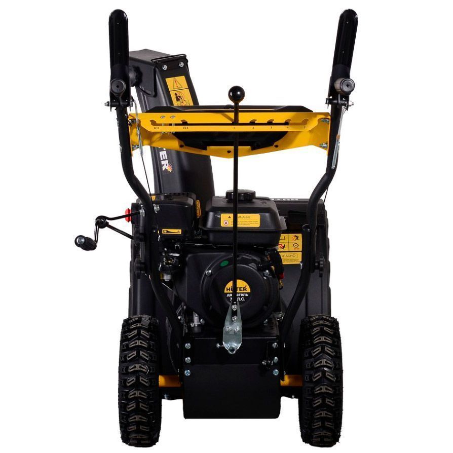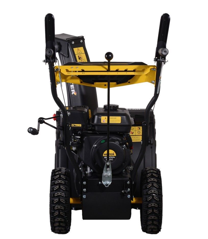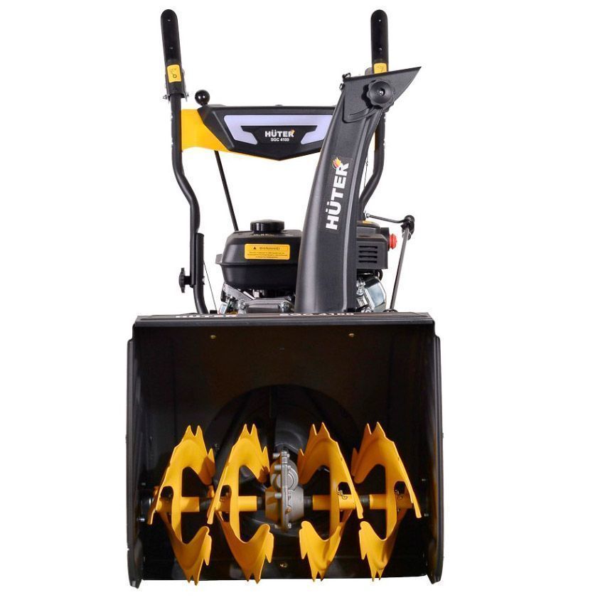 Снегоуборщик Huter SGC 4100 оснащен 4-тактным бензиновым двигателем мощностью 7 л. с. Ширина захвата за один проход составляет 56 сантиметров, шнек с зубцами измельчает плотный снег. Благодаря глубокому протектору колеса не скользят при гололеде, обеспечивая хорошую проходимость машины. Поворот желоба регулируется специальным рычагом.