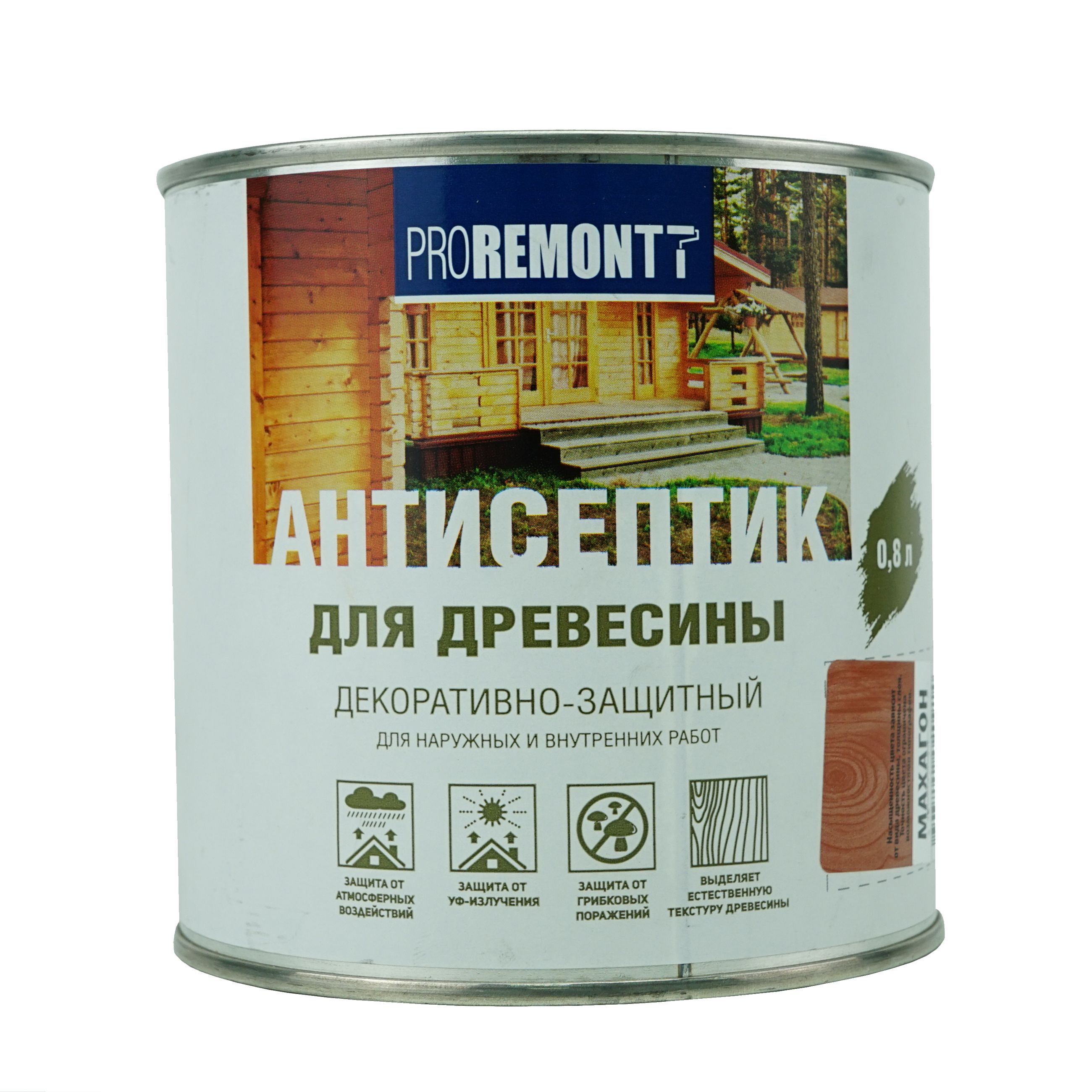 остав деревозащитный Проремонт махагон. Эффективная пропитка (антисептик ) на основе алкидного лака.Цветовая палитра: коричневый. Состав: Алкидный лак, уайт-спирит, светопрочные пигменты, фунгицид, сиккатив, специальные добавки.