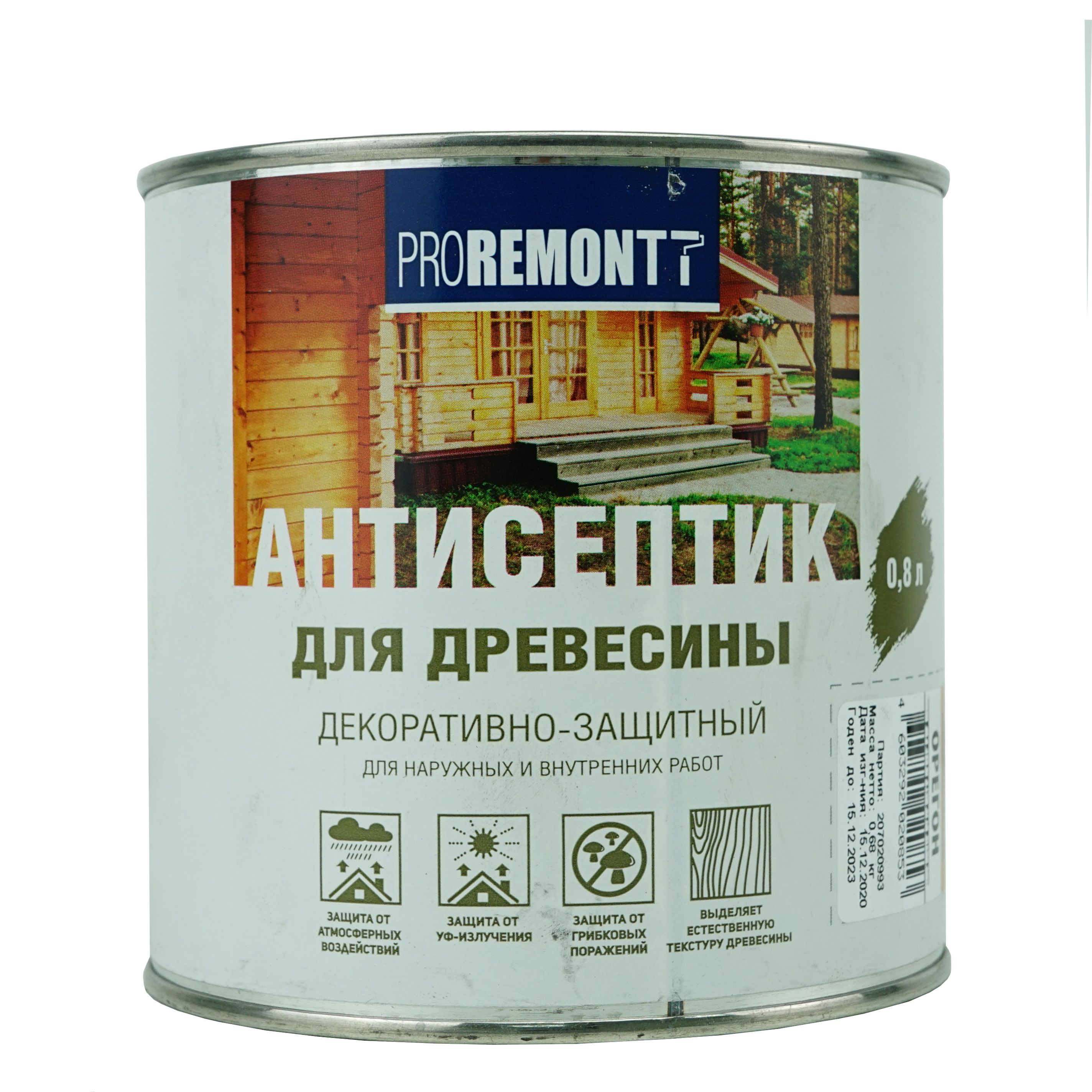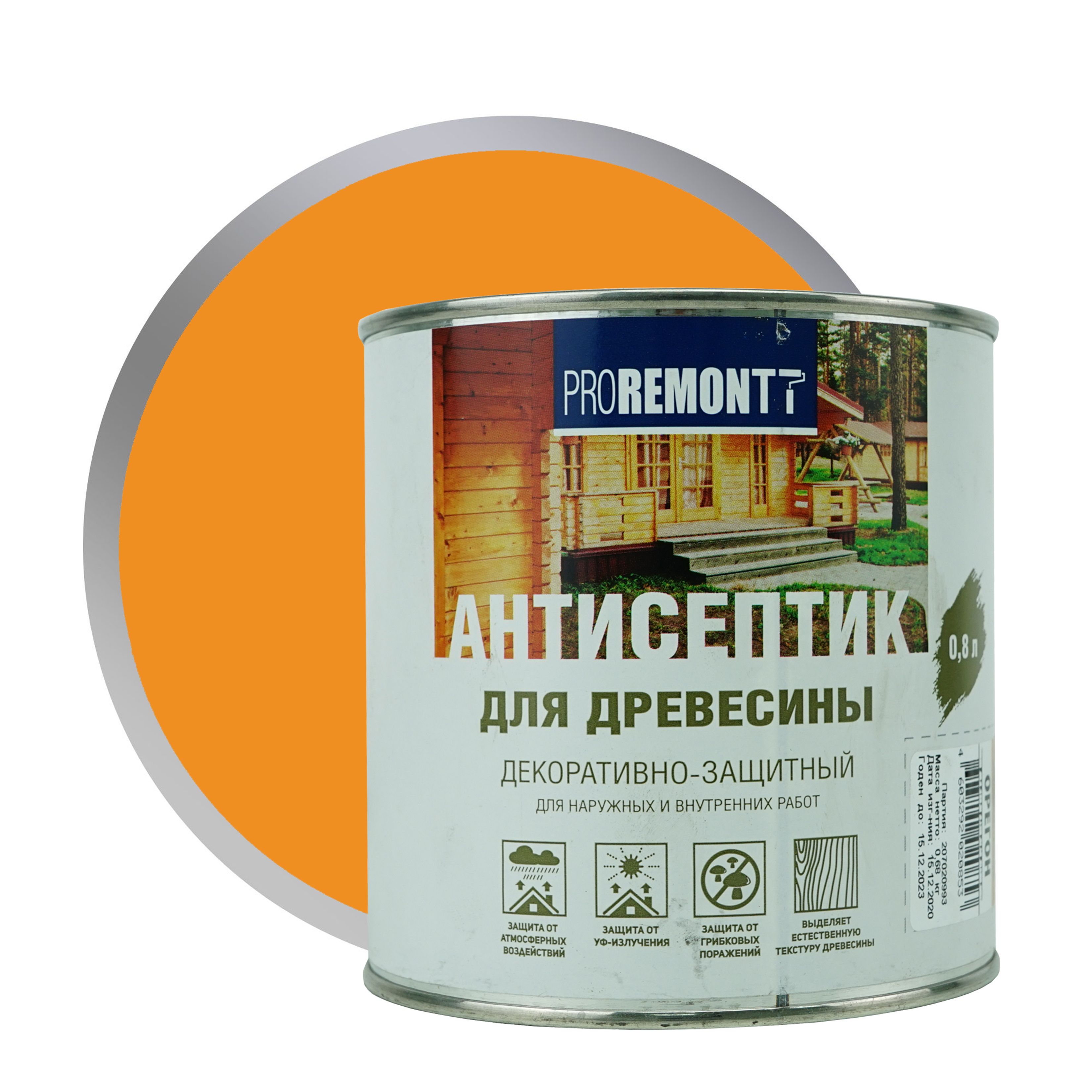 Состав деревозащитный Проремонт орегон. Эффективная пропитка (антисептик ) на основе алкидного лака.Цветовая палитра: оранжевый (медный). Состав: Алкидный лак, уайт-спирит, светопрочные пигменты, фунгицид, сиккатив, специальные добавки.