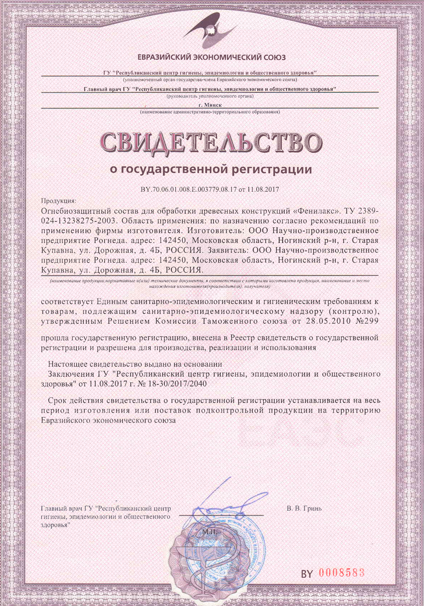 • Переводит древесину в трудносгораемый или трудновоспламеняемый материал;