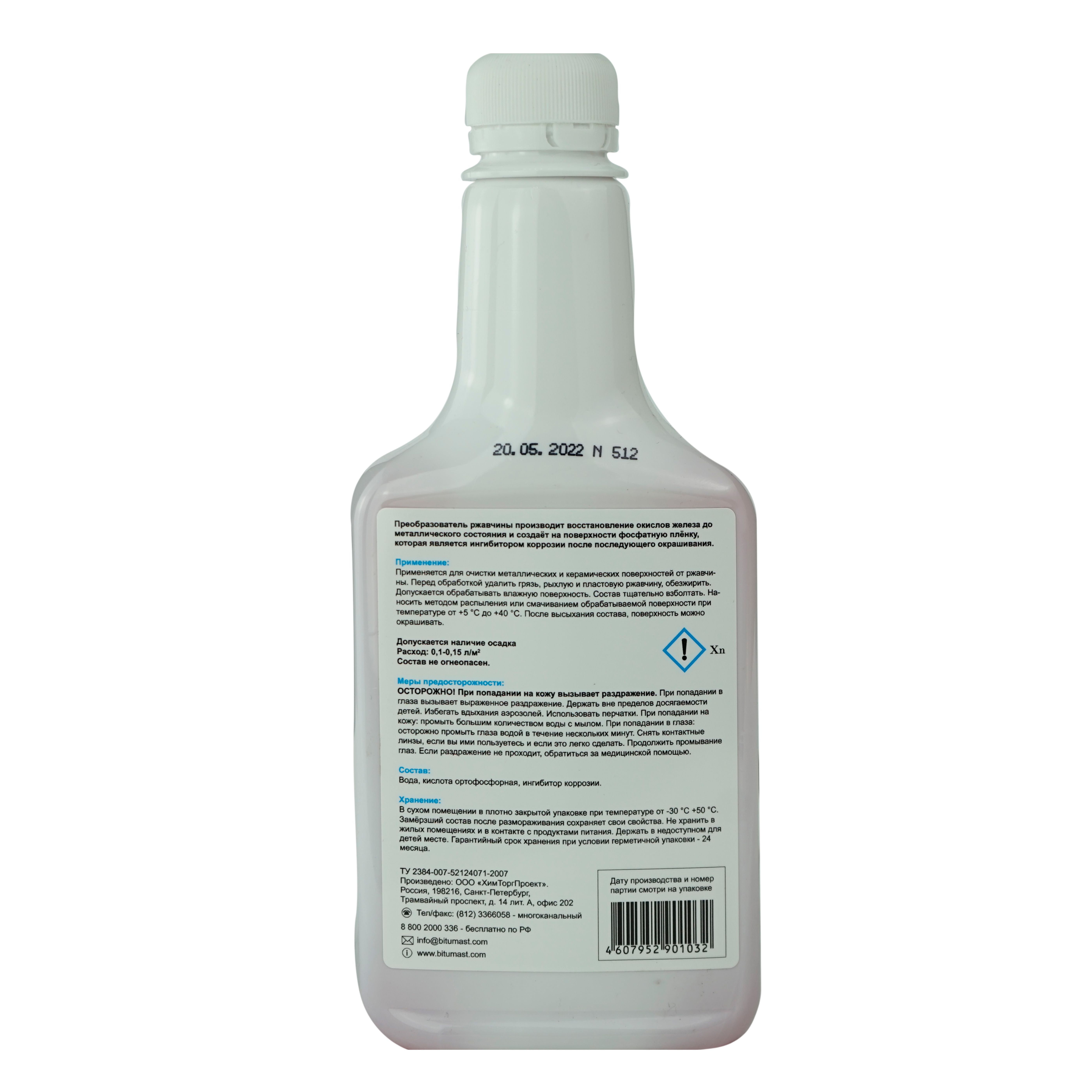 Преобразователь ржавчины Bitumast производит восстановление окислов железа до металлического состояния и создает на поверхности фосфатную пленку, которая является ингибитором коррозии и замедляет процессы образования подпленочной коррозии после последующего окрашивания.